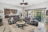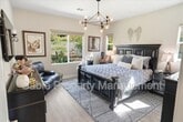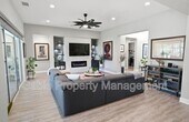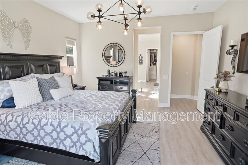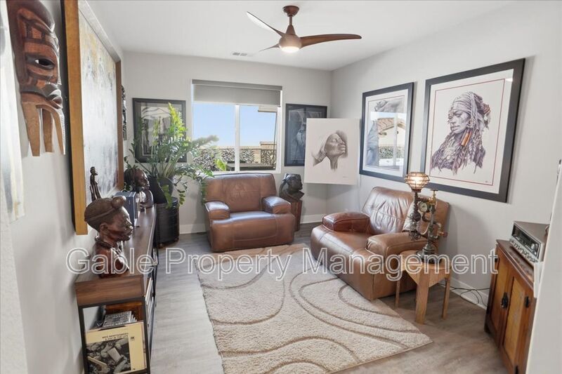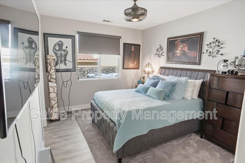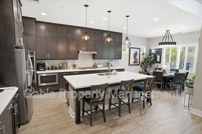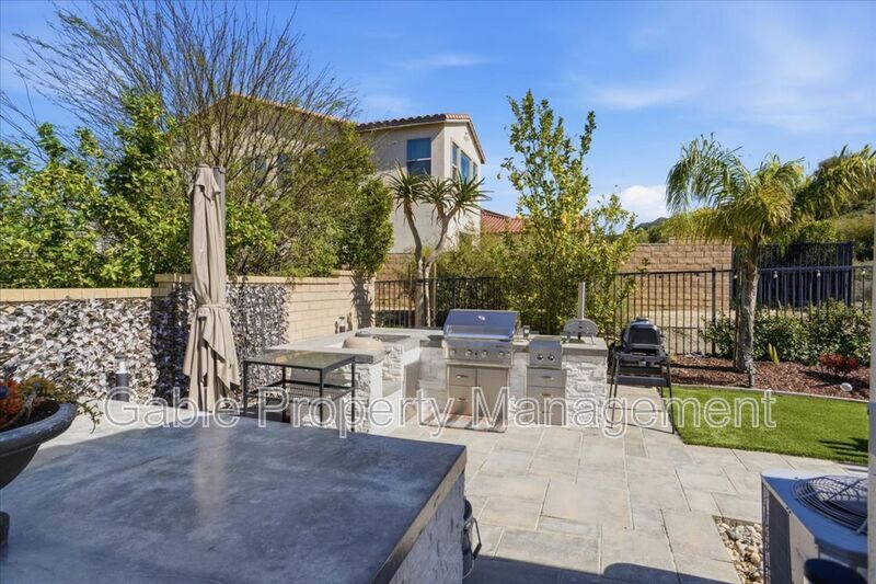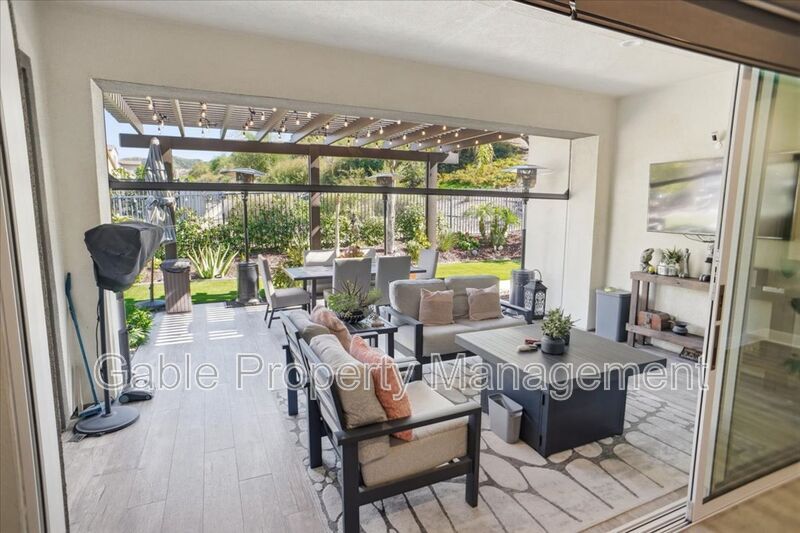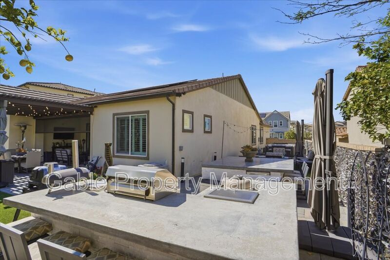 Welcome to this absolutely gorgeous, highly upgraded single-story home located in the prestigious gated community of Aliento. Offering approximately 2,600 square feet of beautifully designed living space, this exceptional residence features three spacious bedrooms, two and a half bathrooms, and a versatile den that can easily function as a home office, playroom, or optional fourth bedroom. From the moment you arrive, the home captivates with impressive curb appeal, lush landscaping, and elegant hardscaping that sets the tone for what awaits inside. A long, welcoming entry leads into an expansive open-concept living area filled with natural light, soaring ceilings, recessed lighting, and a striking designer electric fireplace with custom tile and built-in cabinetry. The seamless layout creates the perfect balance of comfort and sophistication. At the heart of the home is a chef’s kitchen designed for both everyday living and effortless entertaining. It features a large center island with breakfast bar seating, custom cabinetry extending to the ceiling, a spacious walk-in pantry, upgraded countertops with a classic subway tile backsplash, and premium stainless steel appliances, all enhanced by stylish designer lighting. The primary suite offers a true retreat, showcasing a spacious layout, elegant finishes, and a spa-inspired bathroom complete with dual vanities, a soaking tub, a separate shower, and a walk-in closet with custom built-ins. The secondary bedrooms are generously sized and share a beautifully upgraded Jack-and-Jill bathroom, providing both functionality and privacy. Every detail throughout the home has been thoughtfully curated, including upgraded flooring with no carpet, wood shutters, modern fixtures, and a well-appointed laundry room with a utility sink. The attached two-car garage includes additional storage and an electric vehicle charger for added convenience. The indoor-outdoor living experience is truly exceptional, with bi-fold sliding doors opening to a breathtaking entertainer’s backyard. This private outdoor oasis features a covered seating area, built-in barbecue, spa, firepit, and beautifully landscaped grounds, creating the perfect setting for relaxing or hosting gatherings. Residents of Aliento enjoy access to resort-style amenities, including a clubhouse, pool, scenic walking trails, parks, and inviting community spaces. Ideally located near top-rated schools, dining, freeway access, and a brand-new shopping center with popular retailers such as Target, Lowe’s, and Trader Joe’s, this home offers both luxury and convenience. This turnkey residence shows like a model and is the perfect blend of elegance, comfort, and modern living.