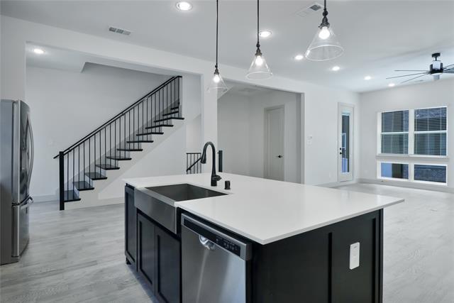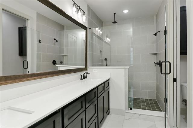 Located in the heart of Trinity Groves, this modern 3 bedroom, 3.1 bathroom townhome offers open concept with large living and dining area’s. Enjoy a roof top deck and stunning views of Downtown Dallas. Come home to spacious bedrooms with ensuite baths located on the first and third floors. Be prepared to entertain in your modern upgraded kitchen adorned with quartz counter tops, ample storage and counter space, pendant lighting above the kitchen island, glass kitchen cabinet doors, Kohler stainless steel farm sink, kitchen cabinets to ceiling, Whirlpool under counter wine center, pot-filler and more. Upgrades include; quartz throughout, hand-held shower wand in master shower, wood floors throughout and tile in all wet areas. The private backyard with artificial turf. Amenities include a resort-style pool, fitness center, game room and bowling alley. The community also offers daily overnight security. A must see!
