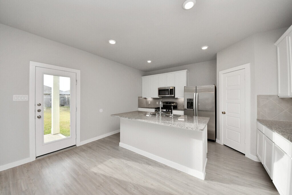 Beautiful two-story home featuring a modern open-concept layout and neutral finishes throughout. The spacious kitchen offers white cabinetry,granite countertops,stainless steel appliances,a large island,and ample storage,opening seamlessly to the living and dining areas—ideal for everyday living and entertaining. The home includes generously sized bedrooms,a private primary suite,and an upstairs game room/flex space. Additional highlights include recessed lighting,durable flooring in main living areas,plush carpet in bedrooms,and well-appointed bathrooms. Enjoy a covered entry,attractive brick and siding exterior,and a manageable backyard. Conveniently located with easy access to major highways,shopping,dining,and schools. MLS# 9996826