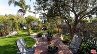 -- Available for 6 month lease April 1 to Oct 31 -- Discover the perfect blend of classic elegance and Venice charm in this beautifully furnished 4-bedroom, 3.5-bathroom home. Situated on a rare L-shaped lot along the iconic Venice Canals, this home offers an unparalleled waterfront living experience. The spacious open-concept living area showcases rich wood and custom shutters, seamlessly flowing into the dining space. The adjacent chef's kitchen is fully equipped with top-tier appliances, making it ideal for culinary enthusiasts. Just outside, a private patio and garden provide a tranquil setting with breathtaking canal views, perfect for entertaining or simply relaxing. Upstairs, the primary suite is a true retreat, featuring a soaring vaulted ceiling, a cozy fireplace, a separate sitting area, and a large balcony overlooking the water. The en-suite bathroom includes a generous shower, soaking tub, and ample storage. Two additional guest bedrooms, each with its own private bath, create an ideal layout for families or visitors. On the third floor, a versatile fourth bedroom offers many possibilities, whether as a home office, creative studio, or quiet reading nook. French doors open onto a stunning rooftop deck, where you can enjoy panoramic views of the Venice Canals and Marina del Rey. Outside, the expansive backyard oasis is surrounded by lush greenery and mature trees, featuring a large patio and a manicured lawn ideal for lounging, sunbathing, or dining. Parking includes a one-car garage plus two additional spaces. Pets considered with approval. Don't miss the opportunity to live in this peaceful canal-front sanctuary, just a short stroll to the beach and the best of Venice. MLS# 26664365