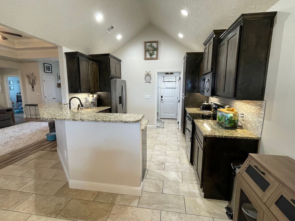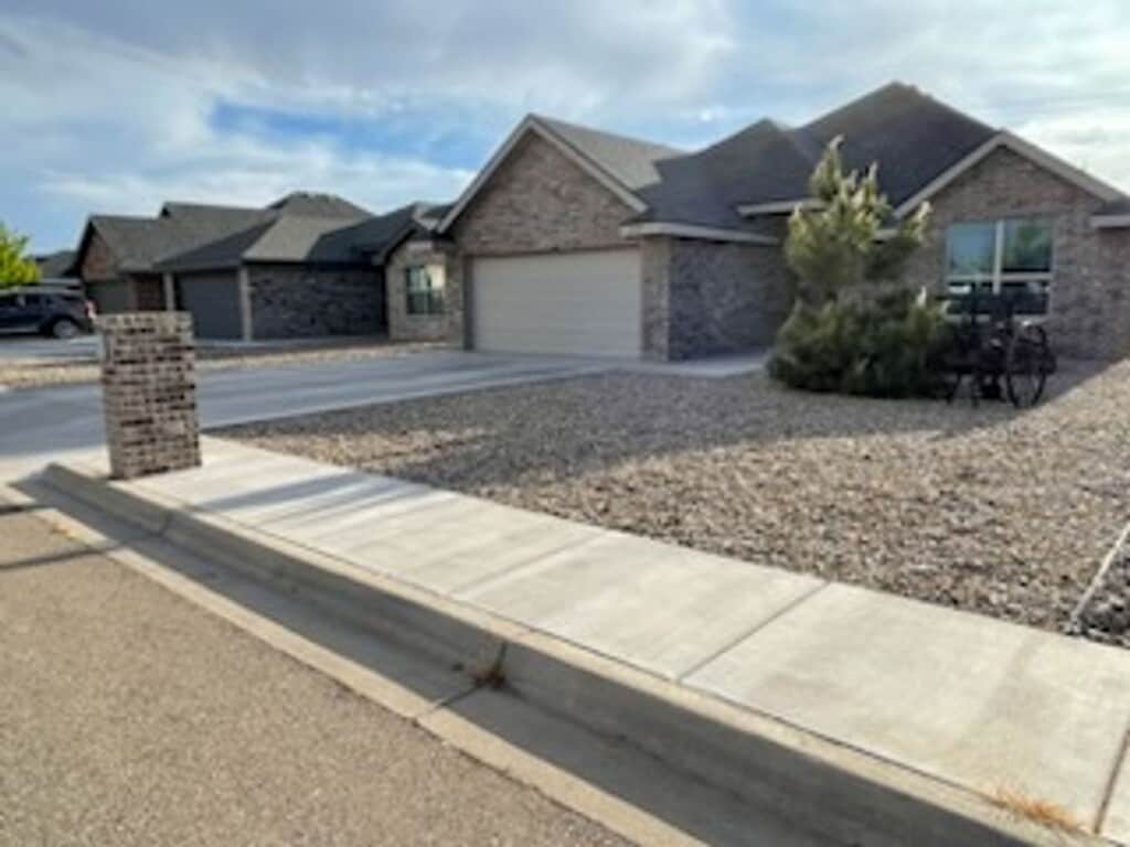 3 bedroom 2 bath new home on east end of town. Home was built in 2018. Full house water softener included ,with reverse osmosis. Over 1600 sq ft of space. Newly painted with zero-VOC paint. Rock in the front and a fenced in back yard. Shed in the back for extra storage. Back yard is cement block fence. Covered back patio. Lawncare is included in rent. 2 car garage with a freezer left for you to use. Newer Washer/dryer included. Master suite has a 2 sink vanity, walk in tiled shower and 2 separate closets. All electric with Farmers Co-op. Zia/Yucca school district. Pet friendly with a $500 non-refundable pet fee. Vivint ready with a ring camera installed.