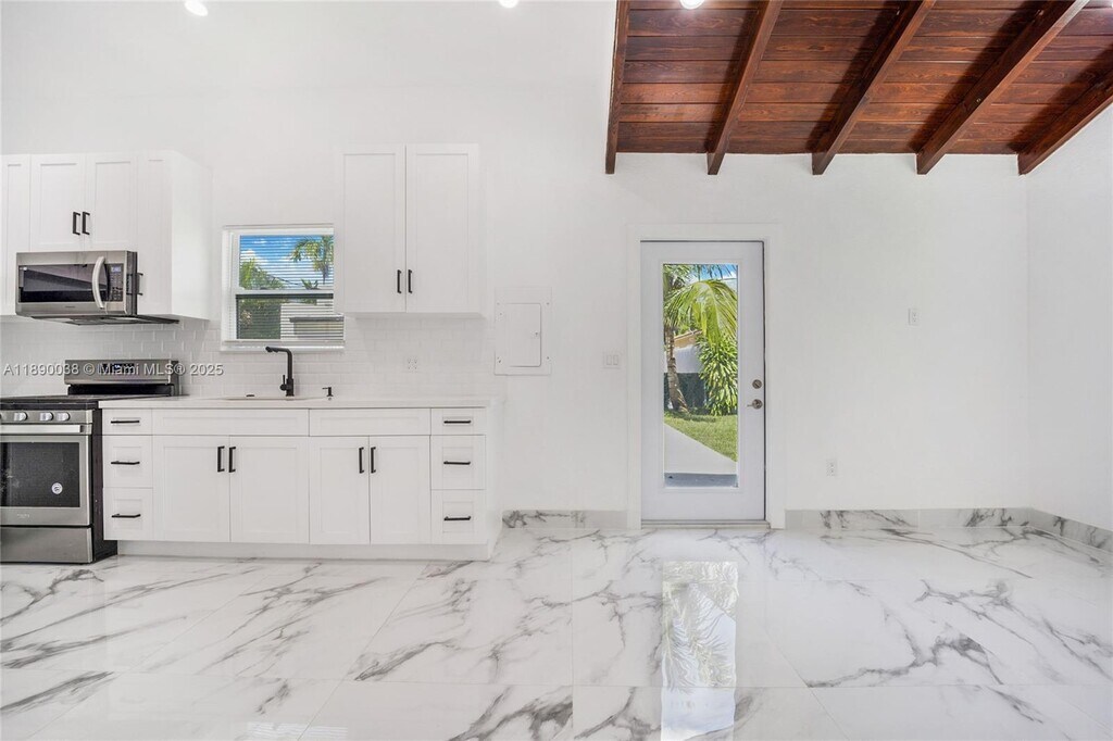 Beautiful Brand new 2/1 small home with private yard, Impact windows, Central A/C, Very clean and bright, Brand New Kitchen with quartz countertops, Gas Stove, Full size Washer and Dryer in laundry room. Utilities includes WIFI, Water, Gas, Trash, Lawn care. 3-4 spaces of Private parking. Qualified tenants only. 3 mths due at move in. Income verification required.