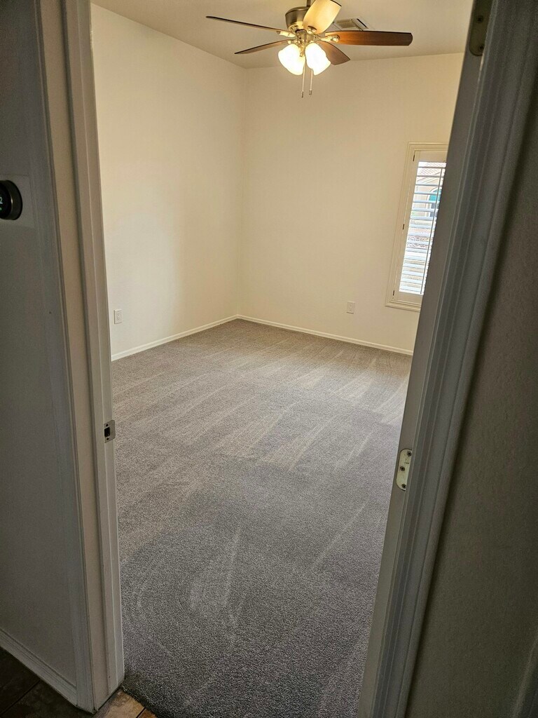Beautiful NON SMOKING home in desirable Sun City Summerlin. New paint and carpet. New water softener. Nice quiet street in a great neighborhood surrounded by golf courses and community pools and gyms among other amenities. Private, enclosed front patio. Walk in closets for both bedrooms. Central air conditioning throughout. 2 car garage with space for a golf cart. Sun city is a golf cart community meaning you can drive a golf cart anywhere in the community including to the grocery store. You must see this home to appreciate it. A small pet is ok. Age restricted community. 55 or older.