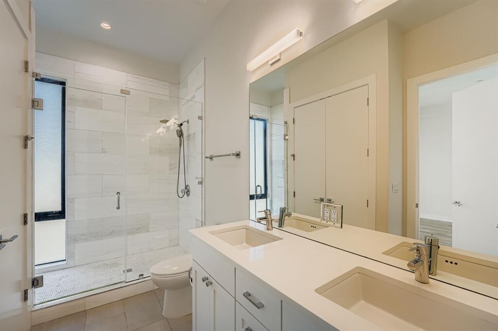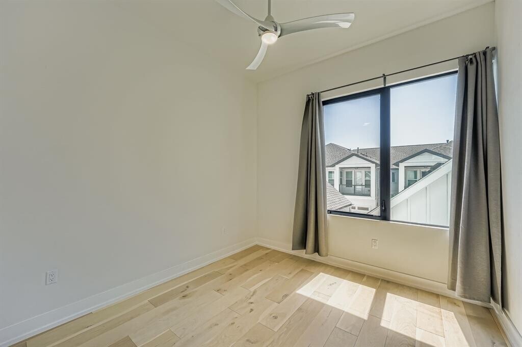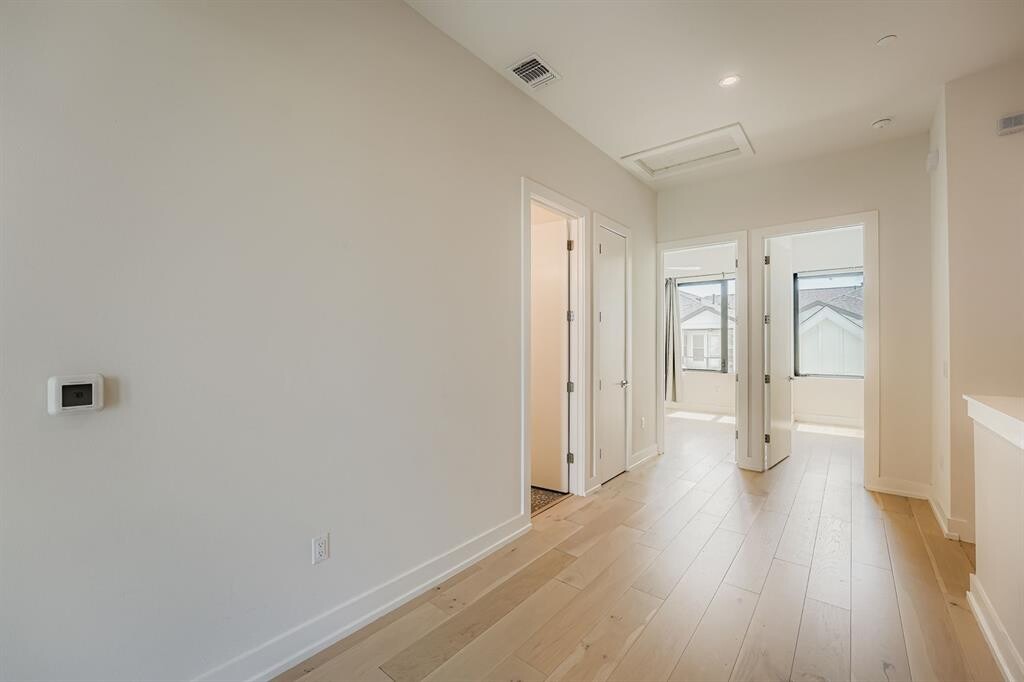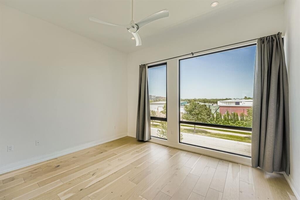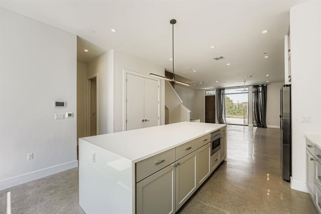 This stunning townhome perfectly blends Scandinavian and contemporary design, offering a lifestyle of convenience and sophistication. Located in the highly sought-after Mueller subdivision, you'll be just minutes from Downtown Austin, UT, and major employers, making your commute a breeze. This home is meticulously crafted with high-end upgrades and thoughtful details. Enjoy the effortless elegance of polished concrete and white oak wood floors throughout, making for easy maintenance. The spacious, open-concept living area flows seamlessly into a bright and airy kitchen, designed for both style and function. The kitchen is a chef's dream, featuring quartz countertops with a waterfall island, custom shaker-style cabinets with soft-close drawers, a sparkling marble backsplash, and top-of-the-line Bosch & Samsung appliances. The commercial-grade storefront windows flood the space with natural light. Other unique features you'll love include a distinctive wood feature wall, a built-in desk perfect for a home office, an oversized shower with a frameless glass surround, modern LED lighting, and a tankless water heater. Experience city living at its finest in this wonderfully appointed and conveniently located home.