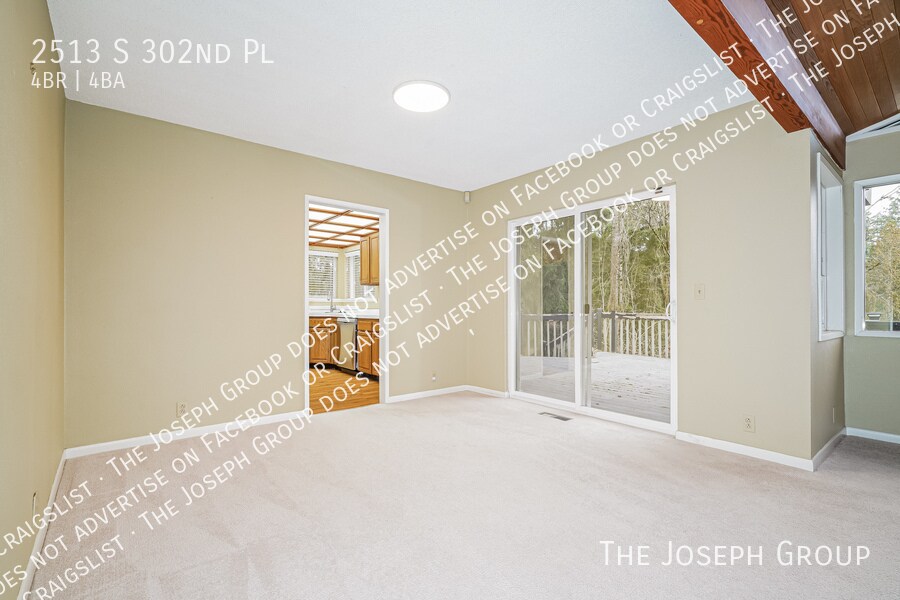 This spacious 4-bedroom home in Federal Way offers a versatile layout with a light-filled living room featuring wood vaulted ceilings, a large kitchen with stainless steel appliances and dining nook, and a generous deck ideal for entertaining. The primary suite includes an ensuite bath and a walk-in closet with built-ins, while the lower level features an additional living area with a second kitchen - ideal for flexible use - plus a large backyard and dedicated laundry with washer and dryer. Tenants are responsible for electric, gas, water, sewer, and garbage. Available for showings - schedule your tour today. Terms: 1st month rent plus security deposit,12-month lease, available NOW! Pets case by case basis with additional costs. Required Residential Benefit Package $41 / month. We do business in accordance with the Fair Housing Act. *While every effort has been made to ensure the accuracy of the information provided, please note that it is not guaranteed and should be independently verified Washer/Dryer In Unit