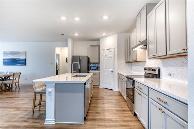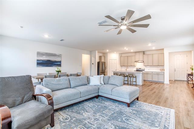 Ready to move in! Welcome home to this beautifully maintained, single-story home located in the highly desirable Winn Ridge community of Aubrey. Completed in 2024, this 2,177 sq ft residence offers a bright, open-concept layout designed for modern living. The spacious kitchen features a large island with breakfast bar seating, quartz countertops, upgraded cabinetry, brushed gold handles, & a walk-in pantry seamlessly flowing into the living & dining areas, perfect for everyday living & entertaining. The spacious living room showcases custom built-in cabinetry, an upgraded ceiling fan & a wall of windows overlooking the backyard. The dining space is the perfect place to gather family and friends. The private primary suite is thoughtfully positioned & includes an ensuite bath with dual sinks, large separate shower, linen storage, & a generous walk-in closet. Three additional bedrooms offer flexible space for guests, home office, or hobbies. Durable luxury vinyl plank flooring, smart home features (thermostat, garage door, sprinkler system, security cameras & doorbell), & a separate utility room enhance both comfort and convenience. Enjoy a fully fenced backyard with a large grassy area & sprinkler system, ideal for outdoor relaxation. Community amenities include a resort-style pool, parks, jogging & biking trails, greenbelts, fishing ponds, & volleyball. Conveniently located near major roadways, shopping, dining, & Denton ISD schools. This move-in ready lease offers modern finishes, energy-efficient features, & an exceptional neighborhood lifestyle.