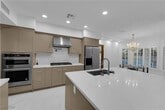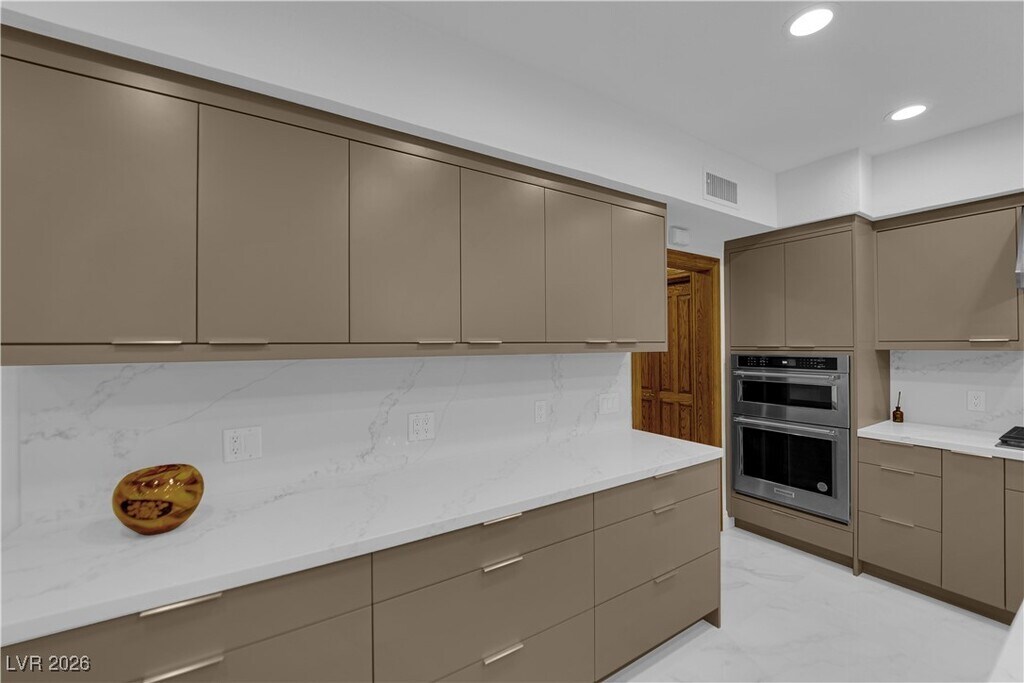 Luxury rental in exclusive guard-gated Rancho Bel Air! This expansive 4,267+ sqft home sits on an oversized lot, just minutes from the Las Vegas Strip. Featuring 4 bedrooms, 2 Primary Bedrooms (1 Downstairs & 1 Upstairs), 4 fully renovated bathrooms, and brand-new flooring throughout, this home blends modern upgrades with timeless elegance. The newly remodeled kitchen boasts custom cabinetry, quartz countertops, new stainless steel appliances, & a large breakfast bar—perfect for entertaining. Enjoy vaulted ceilings, a spacious media room with wet bar, and seamless indoor-outdoor living. The backyard offers fresh orange trees, a sparkling heated pool and spa, covered patio, BBQ & fire pit area. Additional highlights include a 2-car garage with storage & gated private parking. Conveniently located near the Medical District, Las Vegas Convention Center, & Easy Highway Access. Move-in turn key ready luxury rental—schedule your showing today!