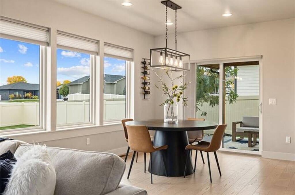 This is a newer ranch-style home built in 2021 located in Silver Creek Estates on the west end. The main level includes an open living/kitchen area with engineered hardwood flooring, a gas fireplace, quartz countertops, and a large kitchen island. Laundry room is located just off the garage entry for convenience. The primary bedroom has a walk-in closet and a bathroom with a tiled shower. There are two bedrooms on the main level and two additional bedrooms in the fully finished basement, along with a large family room, full bathroom, and extra storage space. Outside features include a covered patio, landscaped yard, and underground sprinklers. Contact for more details or to set up a viewing.