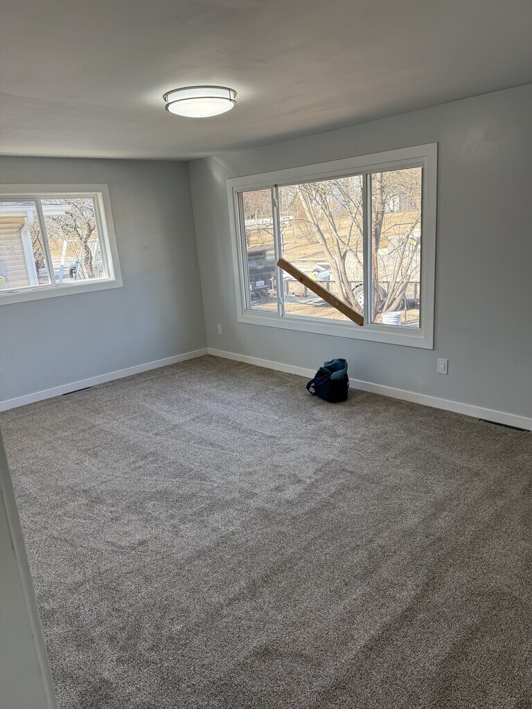 Completely renovated 3 bedroom 1 bathroom duplex with your own garage. Brand new drywall, electrical, plumbing, water heater, furnace, ac, carpet, vinyl flooring, paint, bath tub, shower, toilet, vanity, kitchen cabinets, light fixtures, ceiling fans, windows and garage door. This property is all brand new. Main floor has kitchen, dining room, living room, one bedroom, bathroom and downstairs is 2 bedrooms. Comes with brand new stove and fridge. Accepts section 8. Tenant pays electric, water and sewage. Owner pays trash and storm water. Pets welcome with a non refundable pet fee of $400 12 month lease. First months rent and deposit to move in. If interested in this property lease visit our website at and fill out our free online application before you can schedule a showing.