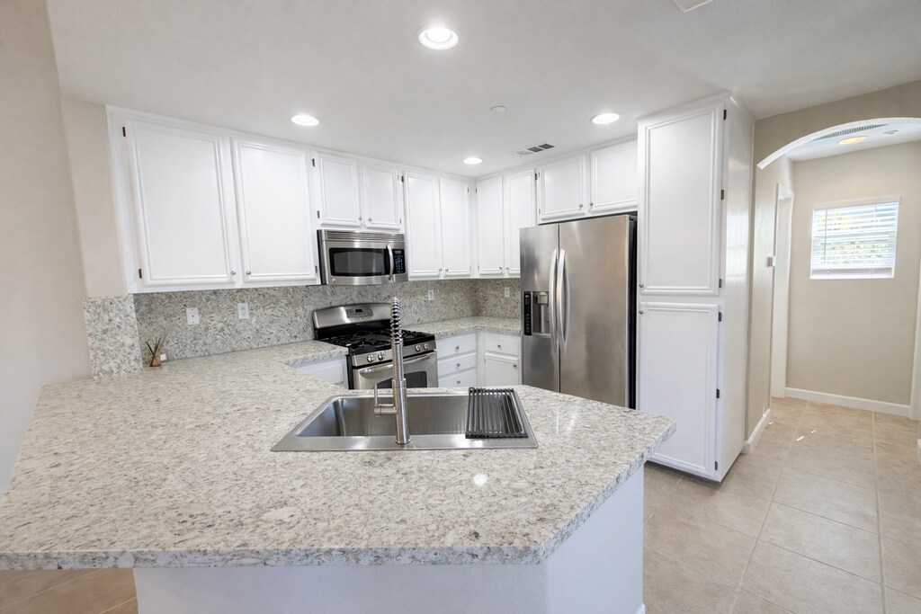 Beautiful and updated two bedroom, two bathroom condo for rent. Attached single car garage and additional parking space. Steps from the community parks and pool/spa! Gated community in West Murrieta. Cute, updated kitchen with white cabinets, new quartz countertops and lvp floors. Laundry in garage with washer and dryer (provided for convenience only. Small patio off the living room/primary bedroom. Small dogs will be considered. DO NOT DISTURB CURRENT OCCUPANT. *All photos may not depict current condition* Please call our office at or visit our website at for more information. All applicants must complete a PetScreening profile even if the household does not have a pet/animal. Please see the link below or contact the office. ext 1192 CA DRE#01197438