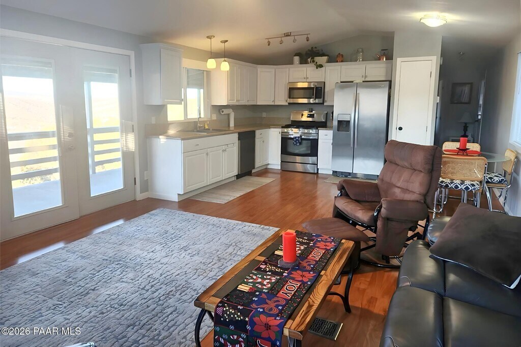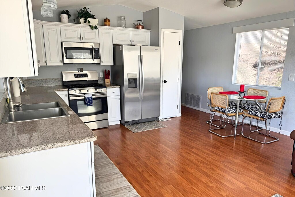 Welcome to this beautifully appointed home nestled within the highly sought-after 55+ community of Prescott Canyon Estates. Fully furnished and thoughtfully designed,this residence offers a bright,open layout that feels both welcoming and refined. Laminate flooring flows seamlessly throughout the home,enhancing the airy feel and providing a clean,modern aesthetic that is easy to maintain.The kitchen is a true highlight,featuring sleek stainless steel appliances,granite countertops,ample cabinetry,and a convenient pantry. It opens effortlessly to the main living space,making it perfect for everyday living or entertaining. Just off the living area,elegant French doors lead you to a private deck where you can relax and take in breathtaking views,including the iconic Thumb Butte,creating the perfect backdrop for morning coffee or peaceful evenings.Both bedrooms are generously sized and designed with comfort in mind. The primary suite offers a spa-like bathroom with dual sinks and a walk-in shower,providing a sense of luxury and ease. A fully equipped laundry area with a washer and dryer adds to the home's convenience,while the two-car garage offers plenty of space for parking and additional storage.Living in Prescott Canyon Estates means enjoying an exceptional lifestyle. The community features impressive amenities including an indoor pool and spa,a fitness and exercise center,a clubhouse,tennis and pickleball courts,and dedicated game and hobby rooms. Beyond the community,you are just minutes from the charm of downtown Prescott,with its historic courthouse square,local shops,dining,and events. Grocery stores,everyday conveniences,and popular shopping destinations such as nearby plazas and marketplaces are also close by,making this location as practical as it is desirable. We welcome small furry friends!