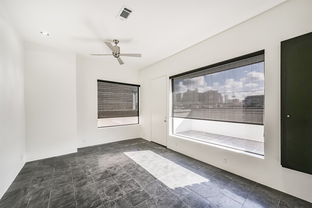 Innovative free standing patio home with private yard,in the heart of Montrose with fantastic views of Downtown,from the private roof-top deck. Interior features include: artistic details throughout,reclaimed maple wood floors,concrete countertops,gallery finished walls and abundant storage. Unique design,by Stasis Design Group,providing the ultimate in modern living. Master suite offers dual closets,or use as a small office. 2nd bedroom offers spacious private balcony with views of Downtown. All appliances included,freshly painted. Car charger in garage MLS# 25467457