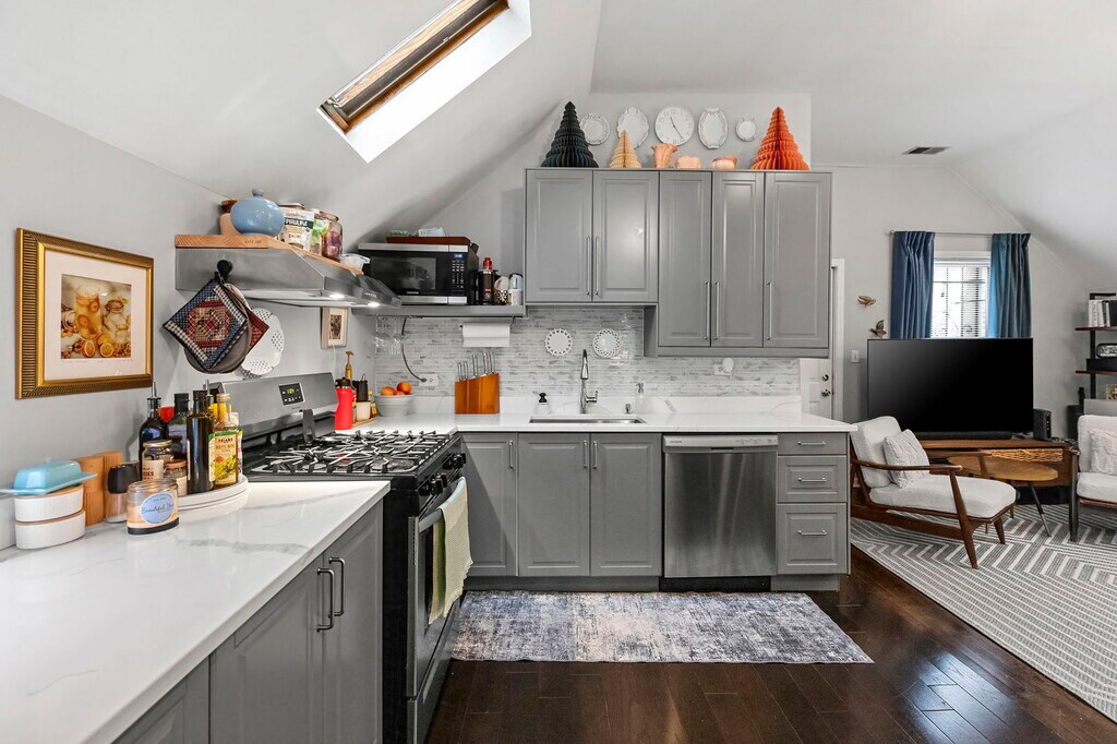 Step into this gorgeously renovated top-floor 2-bed, 1-bath apartment in the heart of highly sought-after Logan Square. The home features hardwood floors throughout, vaulted ceilings, central heat and air, and an in-unit washer/dryer. The beautifully updated kitchen offers gray shaker cabinets, white quartz countertops, a tile backsplash, and stainless steel appliances, opening seamlessly to a spacious open-concept living area with access to a private deck-perfect for relaxing or entertaining. Both bedrooms are generously sized, with the primary bedroom featuring a walk-in closet. Ideally located just steps from Logan Boulevard and the popular Logan Square Farmers Market, with easy access to I-90/94 and the Blue Line for a smooth commute. Enjoy nearby green spaces including Logan Square Park, Haas Park, Dog Park, and Skate Park. Conveniently close to Target, Costco, Jewel-Osco, Mariano's, Aldi, local gyms like LA Fitness and Planet Fitness, and all the restaurants, bars, and shopping Logan Square is known for. Mandatory Resident Benefits Package for an additional $40.00 per month (includes renters insurance, positive credit reporting for on-time rental payments, identity fraud protection and more). $500 non refundable move in fee. 1 pet max under 50lbs with $250 non refundable pet fee and $45/mo pet rent. Listing posted by Uran Kabashi [SYNDID 4150372 02062026]