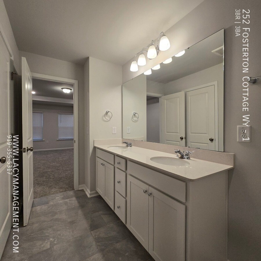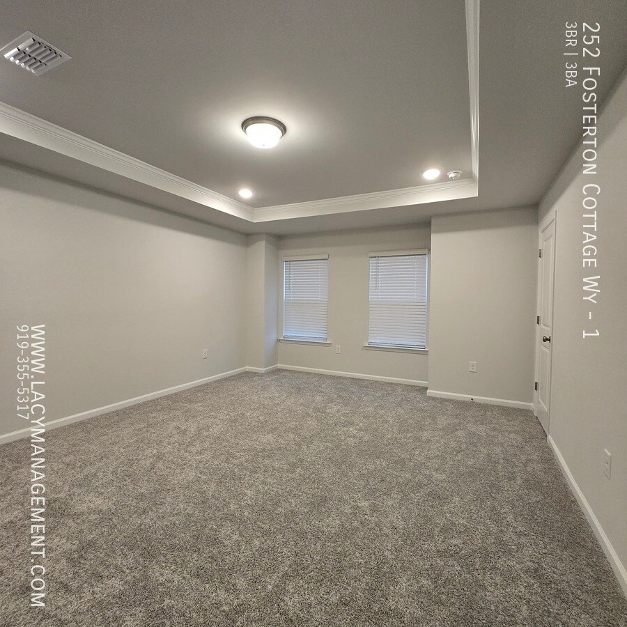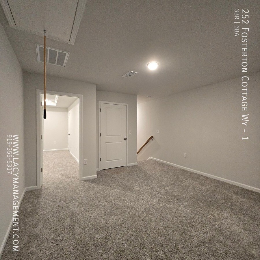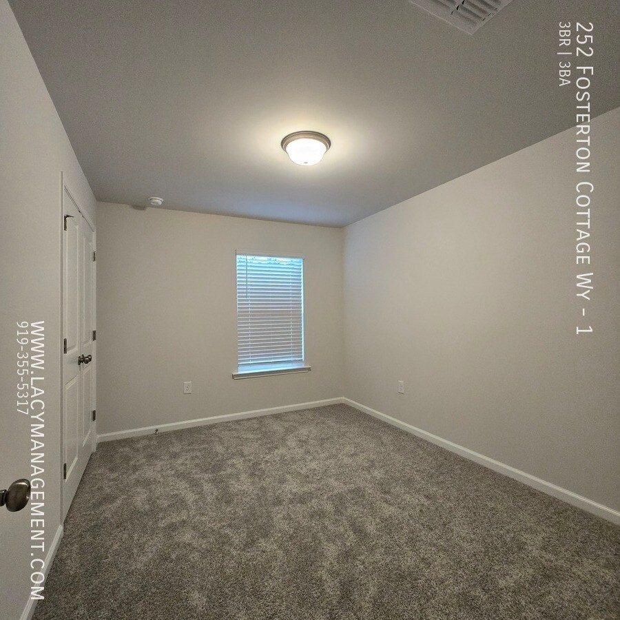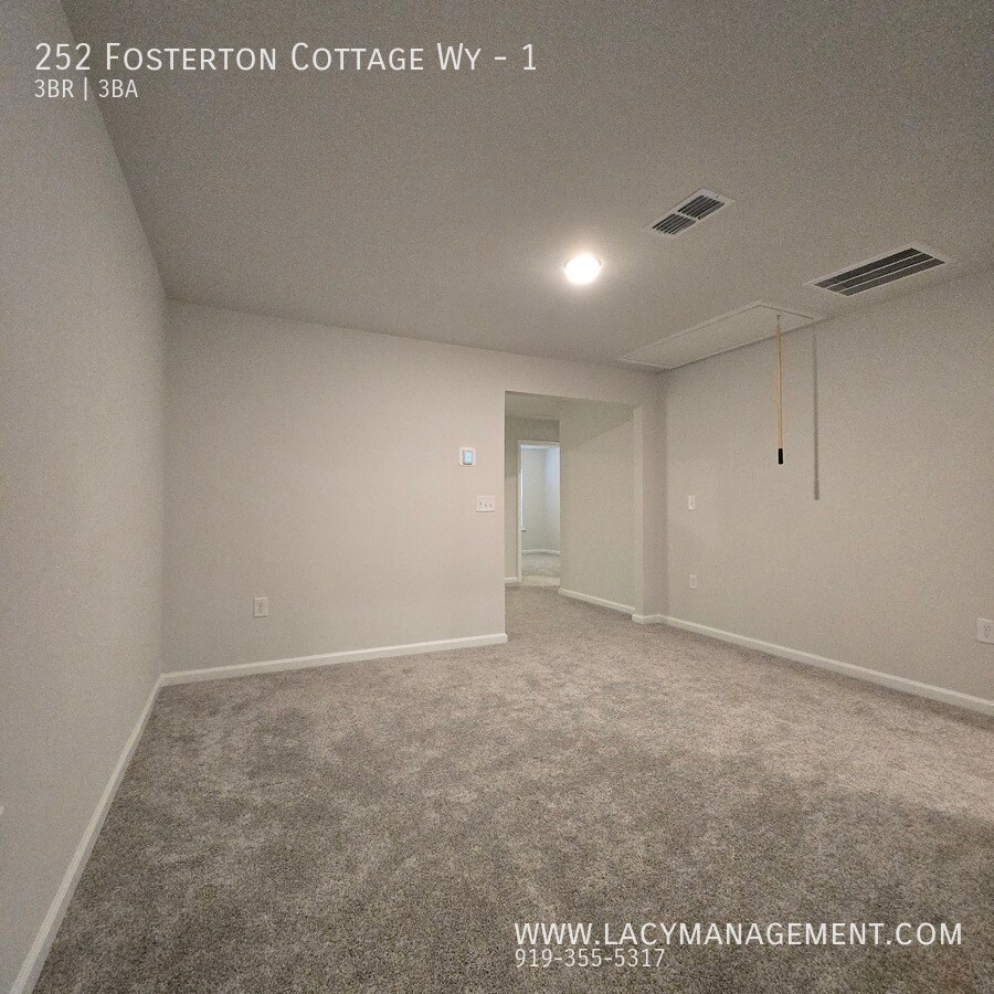 Take a virtual tour! Watch the full property video here: Discover stylish, low-maintenance living at 252 Fosterton Cottage Way, located in the desirable Exchange at 401 community in Raleigh. This beautifully designed 3-bedroom, 2.5-bath townhome offers 1,955 sq ft of thoughtfully planned space, blending modern comfort with everyday convenience. Enjoy community amenities including a pool, fitness center, playground, and dog park. Rent includes 1-gig high-speed internet and streaming TV service through Spectrum Home comes equipped with an EV charger for convenient and efficient at-home charging. Step inside to an inviting open-concept layout filled with natural light. The spacious living area flows seamlessly into the dining space and contemporary kitchen—perfect for entertaining or relaxing at home. The kitchen features ample cabinetry, generous counter space, and a functional design ideal for both daily living and hosting guests. Upstairs, the primary suite provides a private retreat with a large walk-in closet and an en-suite bath. Two additional bedrooms offer flexibility for guests, a home office, or growing needs, while the additional bathrooms are well-appointed with modern finishes. Enjoy the convenience of low-maintenance townhome living in a prime Raleigh location with easy access to shopping, dining, major highways, and local amenities. This move-in-ready home delivers comfort, style, and location—all in one. Don't miss your opportunity to call this beautiful townhome home. Schedule your showing today! Schedule an online showing at: . Submit your application online at: Resident Benefits: **Get over $100 in monthly benefits for just $49.95 with our Resident Benefits Package! Enjoy valuable services with the flexibility to customize or opt-out *** Application Criteria: a) Gross household income of at least 3 times the rent b) A credit score of 650+ is preferred; we are happy to discuss your situation if your credit score is lower c) No evictions in the last 5 years d) A one-time pet fee of $300 per pet applies. An additional deposit may be required for multiple pets. No monthly pet fee; pet screening is required after application approval: $30 per pet. e) One-time admin fee of $250 required to pay after signing the lease.