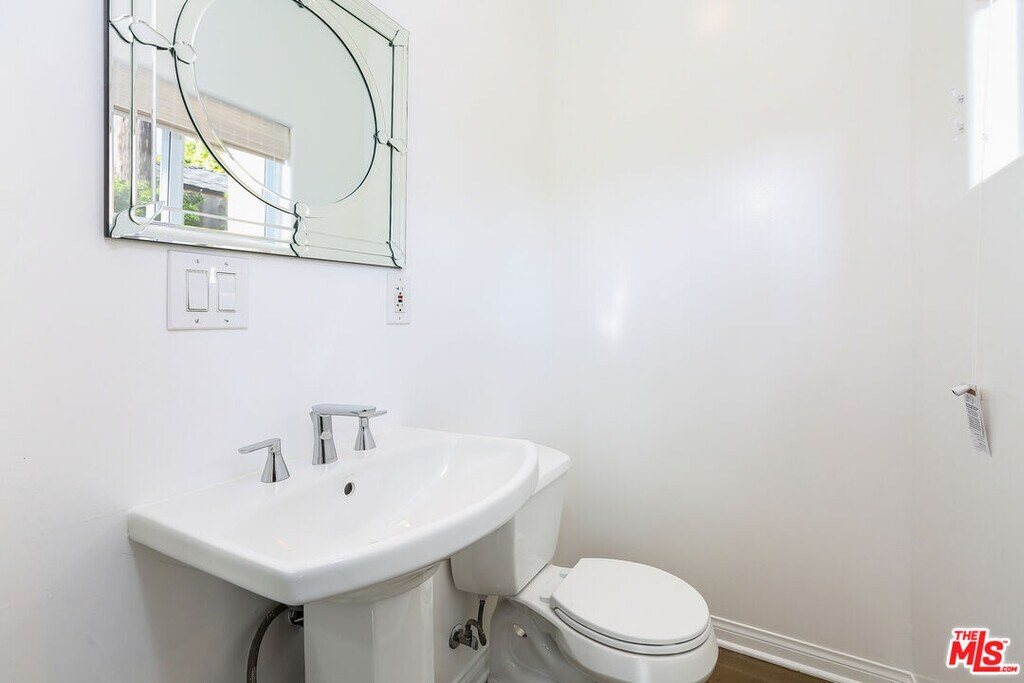 Exceptional, unique, absolute move-in condition 2-story house (in rear of lot) w/3Br & 2.5 Ba. Superb location, 1 block east of Main St, 2 blocks from the ocean, just north of trendy Rose Ave. Open floor plan with 2 bedrooms upstairs & 1 downstairs. Large primary bedroom w/walk-in closet & French doors opening out to a large balcony w/views. 2nd upstairs bedroom features double doors, walls of windows & 3 closets. Beautiful upstairs bathroom w/double sinks, large bathing tub & stall shower. Custom kitchen w/professional range, custom cabinets, concrete floors, granite counters, & sliding door opening out to front patio. Laundry room w/high end" washer & dryer. Downstairs bedroom w/en-suite remodeled bathroom. Rich cherrywood floors, nice private yard, 2 car parking behind electric gate." MLS# 26671751