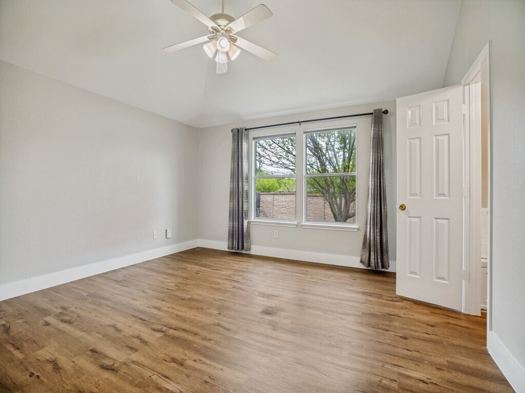 Beautiful 3-2-2 in highly sought-after Northwest ISD. Very clean. New paint. Bright, open floorplan with spacious living area. Gourmet kitchen offers quartz countertops, refrigerator included, and eat-in breakfast area overlooking living room. No carpet throughout. Oversized primary suite with private bath, separate shower, and garden tub. Ample storage. Private backyard with no rear neighbors. Comes with washer and dryer.