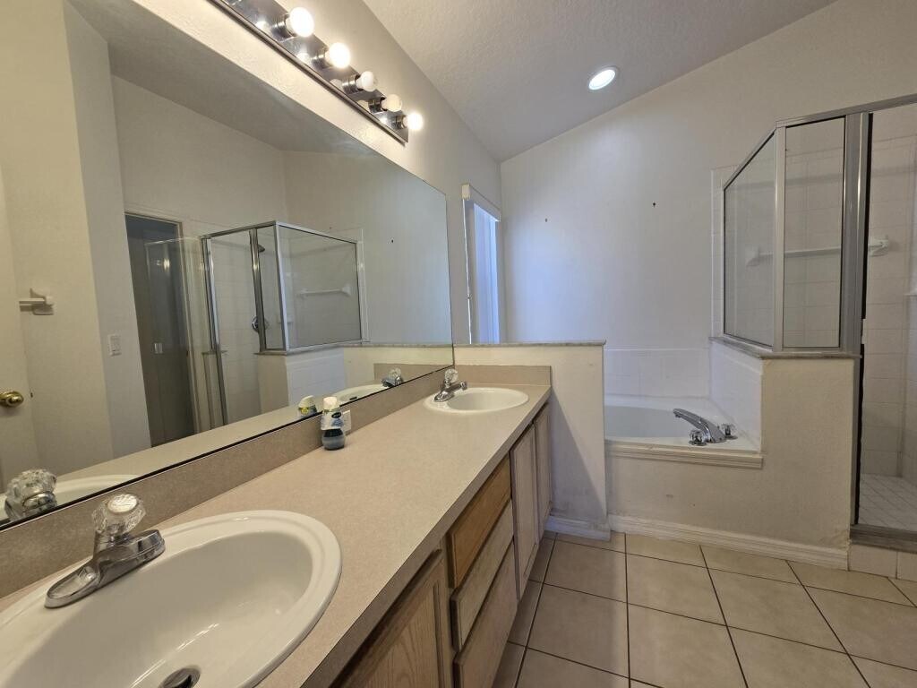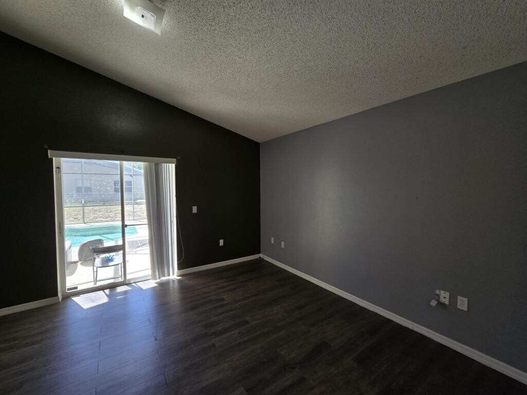 Discover a nice corner lot pool home nestled in the heart of Davenport in the community of Bridgewater at TownCenter. This inviting residence features four spacious bedrooms, two of which are ensuite and three well-appointed bathrooms, providing ample space for comfort and relaxation. The open-concept design seamlessly connects the living, dining, and kitchen areas, making it perfect for entertaining or unwinding after a long day. Coming through the home, you have a defined foyer area with an ensuite bedroom upfront, into the kitchen area which boasts of functional appliances, refrigerator, range, dishwasher and microwave. The laundry room is off of the kitchen with hook up only, however sizable space. Living room features vaulted ceilings with a back view of the pool areas as well as a sliding door access to the pool deck. Master bed is to the back with a sliding door access to the pool deck, nice size with a walk-in closet. Master bath features a dual vanity, separate nice size garden tub and shower. Enclosed toilet for additional privacy and functionality. Guest bedrooms are on the other side and guest bath features combo tub and shower. The attached garage offers convenience and additional storage options, Step outside to enjoy the surrounding neighborhood, where you can appreciate the beautiful Florida weather and explore nearby parks and recreational areas. Conveniently located around shopping, dining and recreation. Easy access to the renowned Orlando theme parks as well as highways. Property is offered As Is. Additional charge for pool service and lawn service.