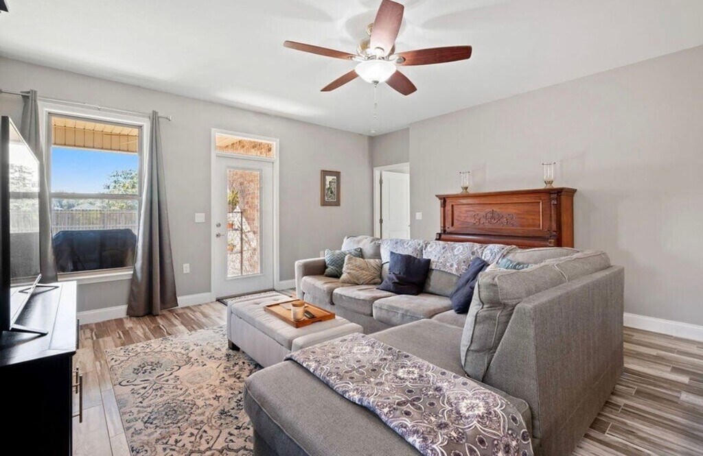 Located in the desirable location between major military installations this newly painted 4-bedroom, 2-bathroom home offers a 2-car automatic garage with driveway parking and incredible efficiency with ready-to-use Solar Panels to significantly lower your energy costs. The bright, airy interior features a split-bedroom floor plan for privacy, highlighted by a spacious living/dining combo with recessed lighting and easy-care tile flooring throughout the main areas, complemented by carpeted bedrooms for added comfort. The full kitchen is a chef’s delight, boasting a breakfast bar, granite countertops, ample cabinetry, and a complete appliances. The primary suite offers an elegant trayed ceiling, walk-in closet, dual vanities and a relaxing garden tub. Three additional well-sized bedrooms share a full bathroom. A dedicated laundry room with washer & dryer hookups completes the interior of this home. Outdoor living is just as inviting with a covered patio and a privacy-fenced backyard. This home combines comfort, space, and a prime location, don’t miss the opportunity to make it yours. Pets are accepted with $250 per pet non-refundable pet fee + $50 admin fee (Subject to Owner Approval). No smoking is permitted. In addition to the rental amount, all Sundance Rental Management residents are enrolled in the Resident Benefits Package (RBP) for $25.00/month which includes liability insurance, credit building to help boost the resident’s credit score with timely rent payments, and much more! The benefits can be found on our website under Tenant FAQ.