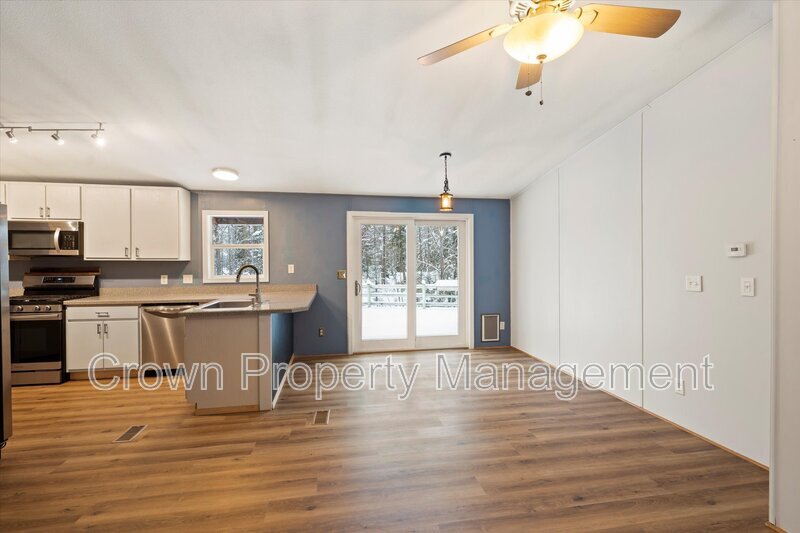 Property Features: -3-bedroom, 2-bath doublewide home on a permanent foundation -Spacious, open-concept living area with updated flooring -Wood-burning fireplace in main living room -Bright kitchen with stainless appliances and propane stove -Wraparound breakfast bar and generous counter space -Dedicated dining area with backyard access -Large windows throughout providing wooded views and natural light -Primary suite with attached full bath -Updated secondary bathroom with modern fixtures -Separate laundry room with storage Additional Spaces: -Fully enclosed breezeway connecting house and garage provides great storage space -Oversized detached garage with built-in workbenches and storage -Concrete floors and ample lighting for workshop or hobby use Exterior: -Peaceful wooded lot with mature trees and natural landscaping -Fenced backyard perfect for pets or privacy - Sprinkler system for lawn -Covered back deck / porch area -Long driveway with ample parking -Quiet location minutes from downtown Whitefish -Private rural feel with quick access to Whitefish, Columbia Falls, and Kalispell Utilities: Propane, electric, trash. Well water. Septic system. 1-year lease required. First month rent + Security Deposit due at lease signing. Tenant pays all utilities. Dog/cat friendly upon Manager approval. Pet rent is $50 per pet per month with an additional deposit of $500.00 This property is professionally managed by Shannon McNamee of Crown Property Management PMP-RPM-LIC-53352. Equal Opportunity housing provider.