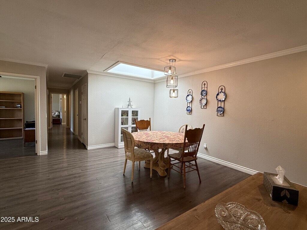 Sun Lakes Fully Furnished Rental. Available for 4 Months or longer. Owner Flexible! Beautifully remodeled,light and airy townhome offering 2 bedrooms plus a den/office. Enjoy new vinyl wood plank flooring t/o,a stylish accent entry wall elegant double doors. Great room features skylights creating an inviting and open atmosphere. The gorgeous kitchen is a showstopper: complete with quartz waterfall island,pot filler for your coffee bar,beverage fridge,built-in microwave,flat-top range and dual sinks. Unwind in the spacious great room with an electric fireplace and French doors that open to the enclosed Arizona room complete with a built-in bar,perfect for entertaining.