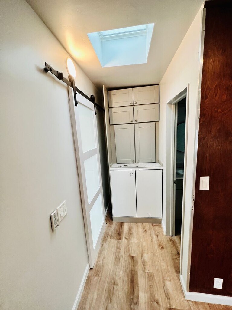 Introducing a luxurious, fully remodeled, and energy-efficient beach cottage in a highly sought-after location south of Bayside Drive. This single-family residence boasts one bedroom, two decks, and a rare 2-car garage, making it a truly exceptional lease opportunity. Conveniently situated just a block away from China Cove beach and a mere 3 blocks from Corona Del Mar State Beach and Begonia Park, this residence offers the perfect coastal living experience. Step inside to discover an abundance of energy-efficient features, including a new reflective roof, double-pane low E windows, and two operable skylights, allowing you to capture refreshing ocean breezes. The electric radiant wall heaters and LED ceiling lighting throughout ensure both comfort and sustainability. The newly painted interior showcases a fully remodeled kitchen with direct access from the rear yard via double Dutch doors, equipped with modern appliances, ample storage, and a gas range with an overhead fan. Experience the convenience of a Bosch quiet dishwasher and a deep SS sink, accompanied by a SS refrigerator. The bathroom has been thoughtfully reimagined to include a tub/shower, sink, skylight, and extra storage. A radiant wall heater and silent exhaust fan add to the overall comfort, while LED lighting enhances the ambiance. The residence features a modern second-story entry with large glass panels and a concrete landing adorned with LED lighting. Awning additions over the garage and entry provide weather protection, ensuring a seamless transition from the garage to the upstairs front door. Moreover, a sophisticated "Barn door" with privacy glass separates the bathroom and bedroom from the living room, allowing for a continuous flow of natural light. Beyond the interior, this property delights with an oversized 2-car garage offering a full-size washer and dryer, a half bath, built-in storage and hobby/workbench. Automatic garage door openers and rear door access from the yard and alley add convenience to daily living. The cozy fenced yard features two mature trees and ample paved space for chairs and tables, providing the perfect setting to relax and unwind. A granite bench/table adjacent to a designated BBQ area awaits al fresco gatherings, and an outdoor cold-water shower allows you to rinse off the beach sand before heading upstairs. Outdoor storage is thoughtfully integrated under the front entry stairs, offering an organized space for your beach toys and accessories. Don't miss the chance to lease this exquisite high-end beach cottage, offering a harmonious blend of elegance, comfort, and energy efficiency. Embrace coastal living at its finest in this exceptional Corona Del Mar residence.