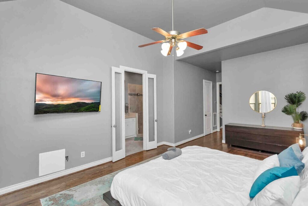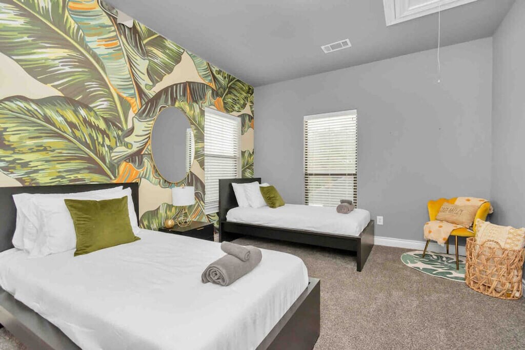 Welcome to this spacious three-story townhome in Houston, ideal for family gatherings and memorable vacations. Feel at home in this property that offers ample room for fun and relaxation, making it a perfect choice for group stays, game nights, or simply a comfortable retreat away from home. This home is equipped with a hot tub for unwinding, a dedicated theatre room for movie nights, and a pool table for added entertainment. High ceilings enhance the sense of space and light, contributing to a refreshing and open atmosphere throughout the property. Each room is thoughtfully curated with personalized touches that create a welcoming and unique environment. Vehicle rentals are available upon request to enhance your travel convenience. This townhome’s location offers easy access to some of Houston’s top attractions. Explore Buffalo Bayou Park, an urban green space with hiking trails, gardens, and water activities just 5.3 km away. Art lovers will appreciate The Menil Collection, a renowned museum with free admission located 4.2 km from the property. Families and animal enthusiasts can visit the Houston Zoo only 6.0 km away, featuring diverse animal exhibits and educational programs. For space exploration fans, Space Center Houston is 39.7 km away, offering interactive exhibits and tours. The Houston Museum District, a cultural hub with 19 museums and galleries, is 8.9 km from the home. No events, parties, gatherings, get-togethers, or game nights are allowed without the approval of the host. Smoking is prohibited in the home. [SI]