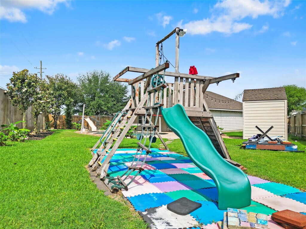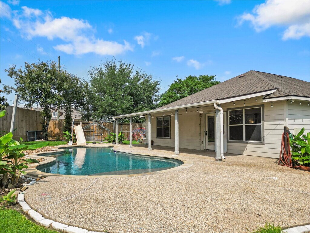 Bright, spacious, and built for fun, this 4-bedroom, 3-bathroom home offers an inviting open-concept living area filled with natural light and thoughtful design throughout. The heart of the home flows seamlessly from the kitchen to the living and dining spaces, creating a perfect layout for gathering and everyday living. A private in-law quarters offers additional space and privacy for guests or extended family. The converted garage is partially climate-controlled, providing comfortable living or workspace, while the remaining half remains open for storage or parking Step outside to a backyard built for making memories—featuring a sparkling pool with a slide and a dedicated play area for kids, all within a private, fenced setting. With plenty of room inside and out, this home offers a balanced blend of comfort and entertainment. Listing posted by Texas Properties [SYNDID 4120862 11092025]