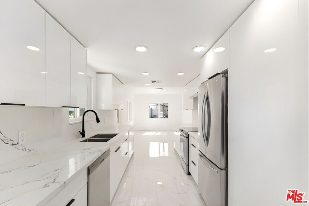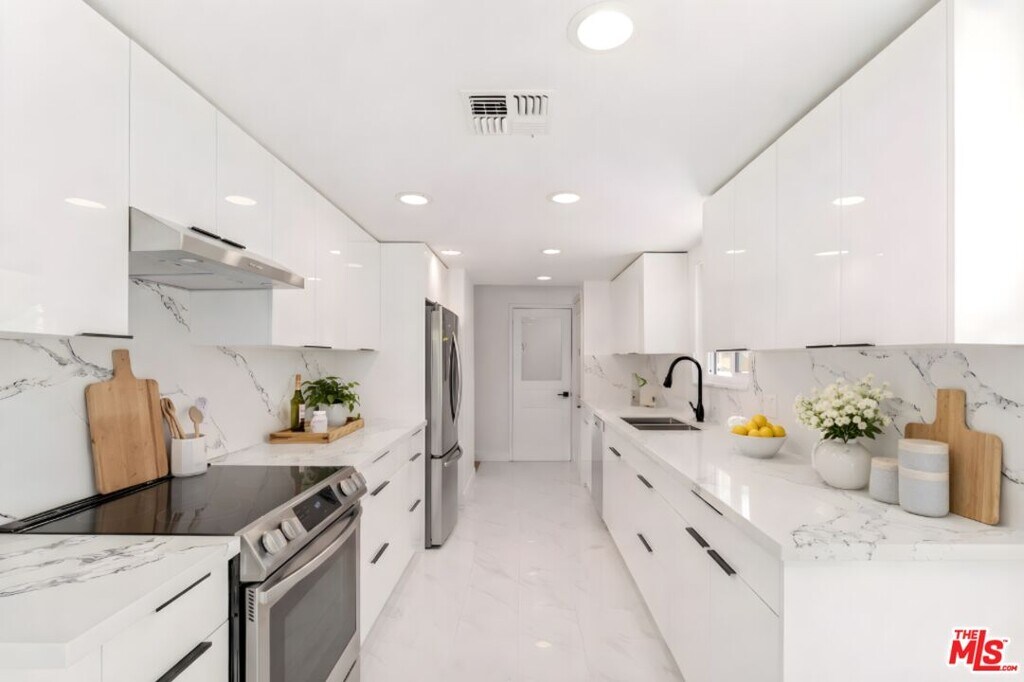 Be the first to live in this newly renovated 5-bedroom, 3-bathroom home on a serene, tree-lined street in prime West LA near Santa Monica. Beautifully updated throughout, this move-in-ready residence features a new roof, new windows, new flooring, a brand-new kitchen, new bathrooms, all new appliances, updated lighting, and fresh modern finishes throughout.Filled with natural light, the home offers spacious living and entertaining areas, including a warm and inviting living room with fireplace, bright dining area, and a stunning white kitchen with sleek cabinetry, stone countertops and backsplash, and all new appliances. The flexible floor plan includes generous bedrooms, a large upstairs loft/lounge, and an airy enclosed sunroom ideal for a sitting room, office, or morning retreat.The expansive upper-level retreat is a standout, complete with a custom walk-in closet and a spa-like bath featuring a double vanity, oversized shower, and soaking tub. French doors, sliding doors, and multiple light-filled spaces create effortless indoor-outdoor flow to the deck and private grassy yard, perfect for relaxing or entertaining. Additional features include in-home laundry and thoughtful updates throughout.Ideally located near UCLA, Century City, Beverly Hills, shopping, dining, and beaches, this turnkey lease combines style, comfort, and convenience. MLS# 26742163