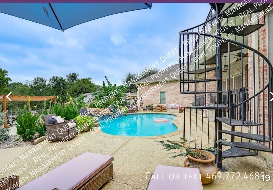 Welcome to a luxurious living experience in Cedar Hill, TX. This stunning 2-story property offers five spacious bedrooms and 3.5 well-appointed bathrooms. The house is available furnished or unfurnished, providing flexibility to suit your lifestyle. The interior boasts hardwood floors, a wood-burning fireplace, and quartz countertops, adding a touch of elegance to the home. With three separate living areas, there's ample space for relaxation and entertainment. The property extends over 1.5 acres, enclosed by an iron fence and an electronic security gate, ensuring your privacy and security. The outdoor amenities are just as impressive, featuring a swimming pool and a hot tub, perfect for unwinding or hosting gatherings. The property also includes a second residential unit, offering a unique living arrangement. With an alarm system for added security, this home provides a comfortable and secure living environment. At $7950.00 furnished, this property offers a blend of luxury, comfort, and security, making it a perfect choice for those seeking a high-quality living experience. Showings require 3-hour notice and prequalification. *Not required to participate in the Resident Benefit Package as this property will be managed by the landlord* 1.5 Acres 2 Residential Properties In One 2 Story 3 Living Areas 7950.00 Furnished Alarm Furnished Or Unfurnished Hot Tub Iron Fence And Electronic Gate Pool Quartz Countertop Security Gate Woodburning Fireplace