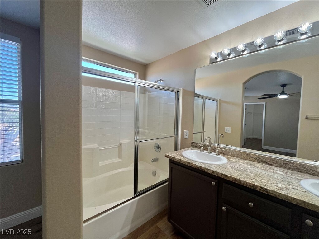 Advertised rent includes all monthly fixed charges. FULL remodel. 1,508 sq ft, 4 bed, 2.5 bath, 2 car garage. House has new two tone paint throughout. Living room w/ceiling fan & light, ceramic tile floors. Kitchen w/brand new custom chocolate shaker cabinets w/granite countertops, recessed lights, ceramic tile floor, new SS appliances, pantry & dining nook. Primary bed w/new luxury vinyl plank flooring, ceiling fan & light w/walk in closet. Primary bath w/dual sinks, granite counters, chocolate oak cabinets, new luxury vinyl plank flooring & tub/shower combo. Bed 2 & 3 w/new luxury vinyl plank flooring, ceiling fan & light & closet. Bed 4 w/new luxury vinyl plank flooring, ceiling fan & light, walk in closet & balcony. Bathroom 2 w/granite counters, chocolate oak cabinets, new luxury vinyl plank flooring & tub/shower combo. Downstairs laundry w/washer & dryer & coat closet. Backyard w/full concrete slab, pavers & synthetic grass. Base rent includes all perodic charges.