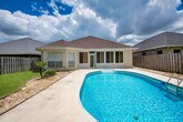 This stunning 3-bedroom, 2-bathroom home offers 2,393 square feet of beautifully designed living space and is truly a must-see! Featuring a saltwater pool, whole-home generator, heated and cooled garage, and a spacious Florida Room, this home has been meticulously maintained and shows like a dream. The open floor plan showcases a large kitchen with abundant cabinetry, granite countertops, stainless steel appliances, upper and under-cabinet lighting, and a wraparound hop-up bar that flows seamlessly into the family room and dining area. The living area is anchored by a cozy gas fireplace, framed by built-in cabinetry with glass shelving and accent lighting—perfect for both relaxing and entertaining. The bedrooms are thoughtfully positioned throughout the home to provide maximum privacy. The spacious primary suite, located off the family room, features a lovely bay window overlooking the outdoor entertainment area. The en-suite bath includes double vanities, a walk-in shower, an oversized jacuzzi tub, and a private water closet. The primary closet is a showstopper with built-in shelving, generous storage space, and plenty of natural light. The heated and cooled Florida Room includes a wet bar and cabinetry and opens to a fully privacy-fenced backyard with a sparkling saltwater pool—an ideal setup for entertaining or unwinding at home. Conveniently located near hospitals, shopping, dining, schools, and more, this home truly has it all! **Pets upon approval with a $350 refundable deposit; Pool service included with rent; Renters insurance required; Dryer included but not warranted; Vivint security system available for tenant transfer at $55/month**