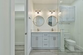 Enjoy stunning Beach and Bay views from this beautiful bayside home,featuring a wrap-around balcony on three sides. Built in 2023,this home offers open-concept living areas,3 bedrooms,2 full bathrooms,and an indoor utility room. The spacious living area boasts high ceilings and recessed lighting. The kitchen is equipped with stainless steel appliances,beverage cooler,soft-close cabinets and drawers,under-cabinet lighting,quartz countertops,a deep stainless steel sink,pendant lighting,and pantry. All bedrooms and living area include ceiling fans and wall TV/cable wiring. Primary suite features high ceiling,ensuite bathroom with double sinks,roomy glass and tile shower,spacious walk-in closet with pocket door,and private Gulf-facing balcony. Ground level with garage,covered parking for several cars,outdoor shower,and plenty of space for entertaining. Experience the Gulf breezes and beautiful sunsets year-round in this exceptional home. MLS# 19397042