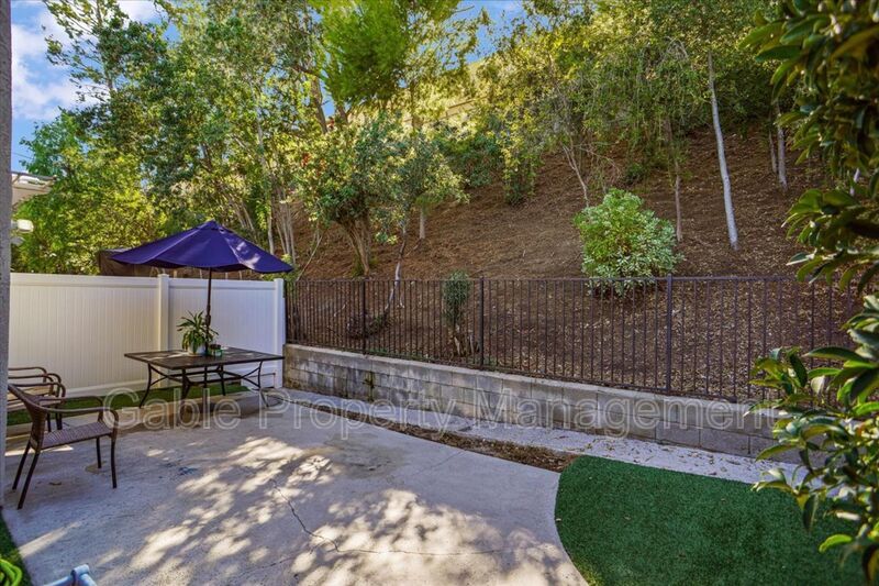 Welcome to this stunning 3-bedroom, 2.5-bath townhome located in the highly sought-after Paseo Dorena community. This home offers a perfect blend of comfort, privacy, and convenience, featuring a private backyard and gated entry for added security. Step inside to find a spacious living room with high ceilings, large windows that fill the space with natural light, and custom paint throughout. The main floor includes a powder room with ample storage, upgraded light fixtures, and a dining area with a ceiling fan. The large kitchen features white cabinets, stainless steel appliances and sink, upgraded countertops with a tile backsplash, a breakfast bar, and a pantry for extra storage. Upstairs, you’ll find three generous bedrooms, each with ceiling fans. The primary suite includes an attached master bathroom with a walk-in shower, while the hall bathroom features a walk-in tub for added convenience. The home also includes two parking spaces — a one-car garage and an additional covered parking space. Enjoy your private backyard complete with a seating area, turf, and lush green hillside for extra privacy. The Del Prado community is beautifully maintained landscaped common areas. Conveniently located off the 5 Freeway on Lyons Avenue and Avenida Dorena, this home is close to award-winning schools, shopping, parks, and restaurants — everything you need just minutes away!