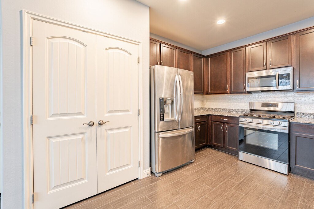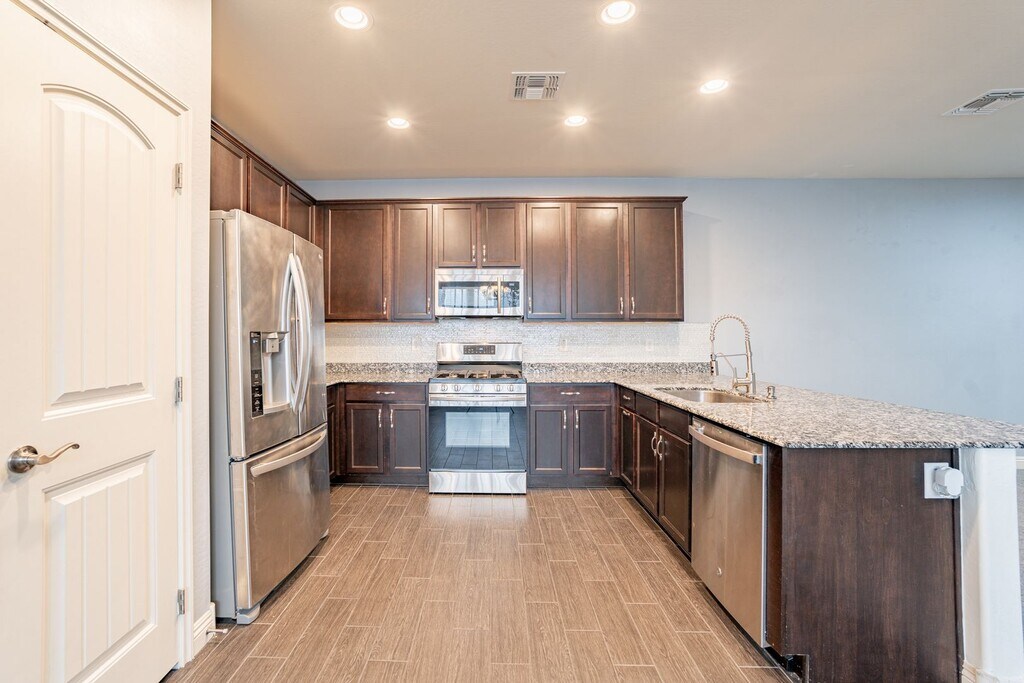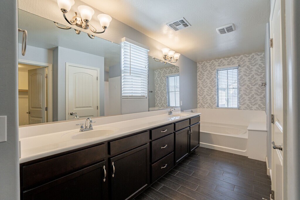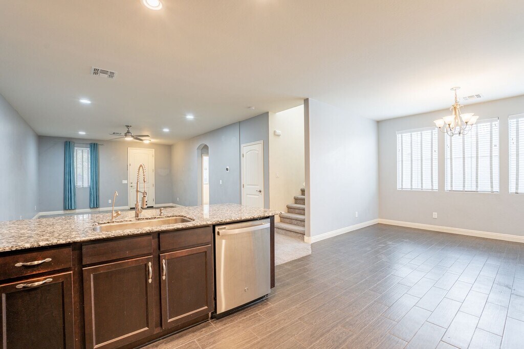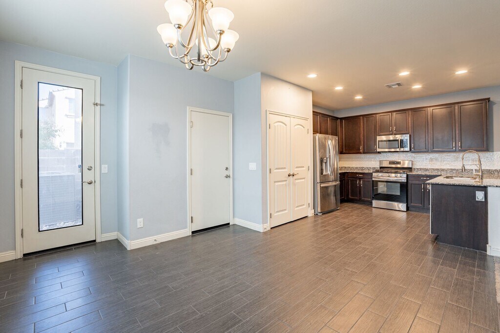 Welcome to Verrado! Large Open floorplan on main floor. One bedroom and bath downstairs, three more upstairs including LARGE Master Suite. Kitchen has upgraded cabinets with soft close drawers and doors. Wood-like tile flooring, granite countertops, and stainless steel appliances. Master features a large walk-in closet, garden tub and snail shower. Cozy side yard with gas hookup for BBQ. Apply at Tenant will pay $5.00 monthly admin fee, $24.00 monthly HVAC Preventative Maintenance and rental tax. Total move-in cost equals 1 month's rent, 1 month's security deposit, cleaning deposit, carpet cleaning fee (non-refundable) and rental tax.