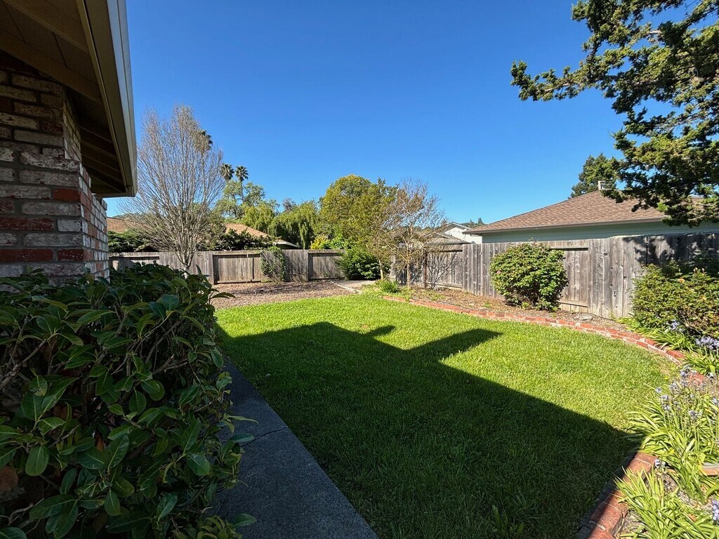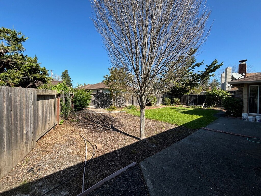 This updated charming single-level home located in Santa Rosa's Bennett Valley area has 3 bedrooms with 2 bathrooms a living room and a family room. New paint throughout and refinished hardwood floors. Through the front door and to your right is the first of two large living rooms with hardwood floors and new LED can lighting. The kitchen is located at the back of the house and features white tile countertops, a new kitchen sink, electric stove, microwave, stainless steel dishwasher and refrigerator (provided but not warranted). There is a small dining room off the kitchen and next to the other living room. The family room features laminate flooring, new overhead LED can lighting, a wood burning fireplace and sliding glass door to the beautiful backyard. Two hallway bedrooms with hardwood flooring and fan/light combo's share a full hallway bathroom with new tile flooring. The primary bedroom is located at the end of the hallway and features a fan/light combo, large closet and its own primary bathroom with new tile flooring. Landscaping included. Attached two-car garage. Washer and dryer hookups in garage. Sorry, no pets or co-signers. 1 Year lease (MT)