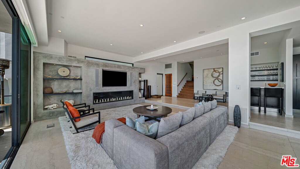 FLATROCK MALIBU ROAD: Located directly in front of the famous "Flatrock on Malibu Road" and on approximately 50 feet of sandy beach, this oceanfront residence offers endless coastline views from Point Dume to Palos Verdes. Malibu Road offers a location off Pacific Coast Highway while still being right in the center of Malibu near the best restaurants, shops and activities. Built in 2002, this home feels solid like the rock it takes it's name from with a concrete caisson foundation and the finest materials and finishes. The scale of the main level is unmatched with high ceilings and open living areas offering the perfect setting for beachside entertaining. Touch screen smart home automation system, automatic window shades, wet bar with wine fridge and many more thoughtful touches. The main level also offers a large living room, dining area and breakfast bar. The beach access to the sand below is secure and there is an outdoor shower and space to store your beach toys. Escape to the luxurious primary bedroom offering a fireplace, private balcony spanning the width of the property, custom built walk-in closet, and a large bathroom with infinity tub, double sinks and a steam shower. There are four additional bedroom suites each offering privacy, ample closets, marble and stone bathrooms and enough space for your guests. This is a one of a kind location on Malibu Road where you can enjoy the waves crashing against Flatrock as you enjoy everything you would want in a beachfront home. The property is available for long term furnished lease at $50,000 per month or summer furnished lease at $100,000 per month. MLS# 25629405