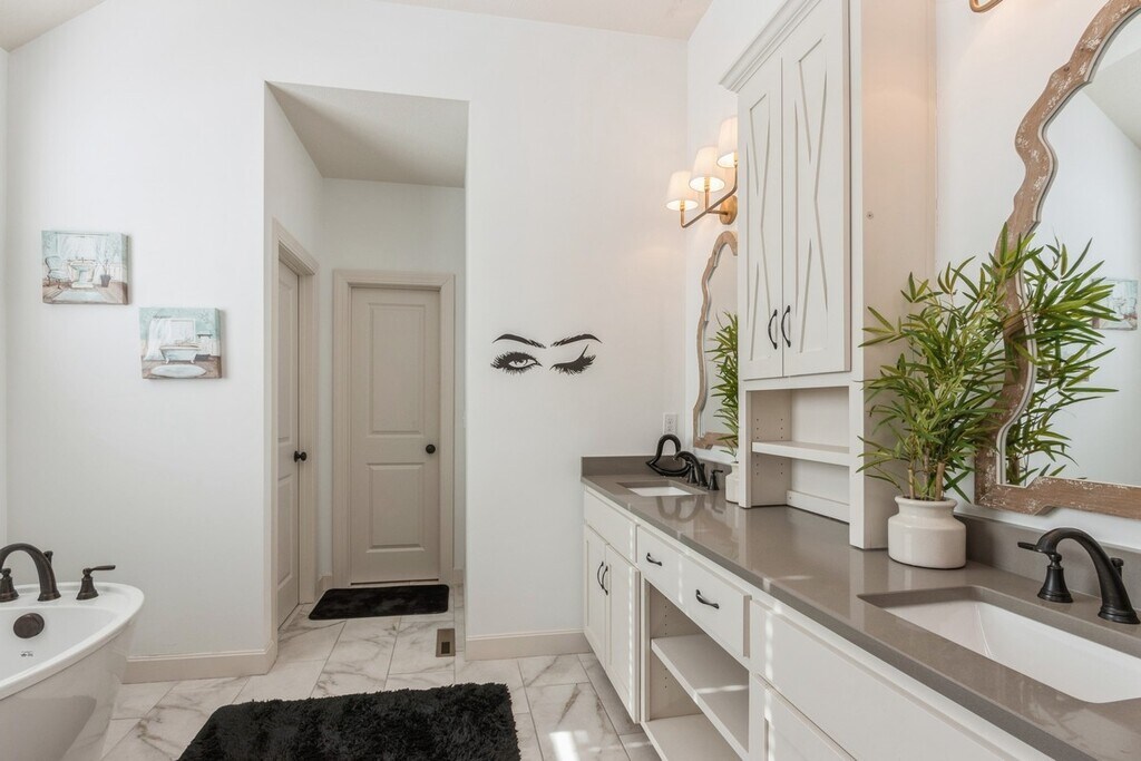 Beautifully fully furnished home. Home has been barely occupied in this new neighborhood and includes window treatments, radon mitigation system, garage door openers and additional landscaping! Dynamite Kitchen w/ quartz countertops, gas range/hood and large walk-in pantry. Dreamy Master Bedroom/Bathroom w/ stand alone tub and tiled shower. Additional 2nd Bedroom on main. Finished lower level includes walk-up bar, spacious Rec Room w/ large windows and 2 additional bedrooms w/ full bath. Enjoy the large lot without the maintenance!