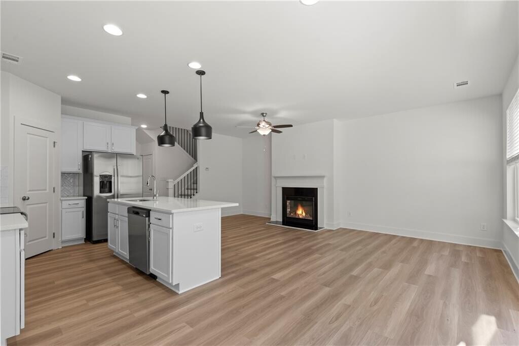 Discover the epitome of contemporary living in this stunning,townhome designed to captivate your senses. With meticulous attention to detail,revel in the allure of this 3-bedroom,2.5-bathroom home,offering an abundance of natural light and a wealth of thoughtful features. Step inside and be greeted by the airy,open concept floor plan,featuring a well-appointed kitchen on the main level. The kitchen boasts sleek granite countertops,pristine white cabinets,and top-of-the-line stainless steel appliances,including a side-by-side refrigerator. Elegant hardwood flooring graces the main level,while plush carpeting adds warmth and comfort to the upper floors. Ascend to the second floor and discover a generously sized loft,perfect for creating a second living room,a home office,or any other space your imagination desires. This versatile area opens up a world of possibilities for customization Retreat to the master suite,where you'll find a masterfully designed bathroom that includes a separate tub and shower,a double vanity,and a spacious walk-in closet. It's your personal sanctuary for relaxation and rejuvenation. Two more spacious bedrooms on the upper level provide ample space for family,guests,or creative use of your choice. The fully fenced yard is a haven for pet owners,offering a secure and private space for your furry friends to roam. The lawn care is thoughtfully maintained by the HOA,ensuring your outdoor space remains pristine and hassle-free. Enjoy the convenience of a 2-car garage and a driveway with space for two additional cars,ensuring that parking is never a concern. Nestled in a beautiful new community in Conyers,this townhome is conveniently situated near shopping,grocery stores,and the I-20,making daily errands and commutes a breeze. MLS ID 7720649