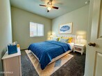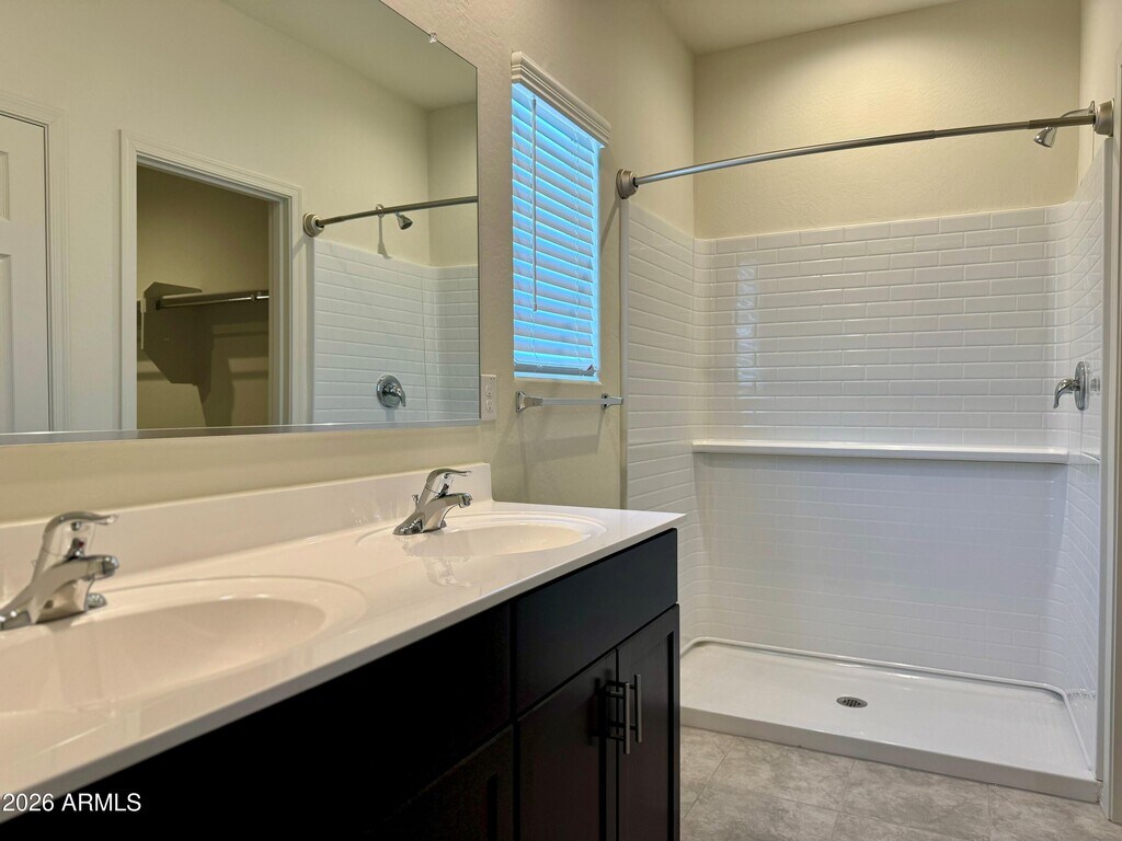 This spacious,newly built single-level residence offers 4 bedrooms,a large den,and 2 bathrooms. The kitchen features an island,walk-in pantry,and stainless-steel appliances,including a refrigerator. Dark-stained 36'' upper cabinets and stylish tile flooring throughout (excluding bedrooms and den) add elegance. Washer & Dryer Included and easy to maintain landscaping with artificial grass in the back.