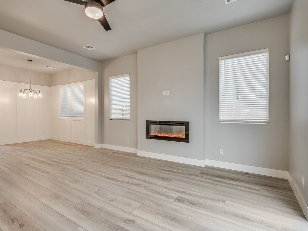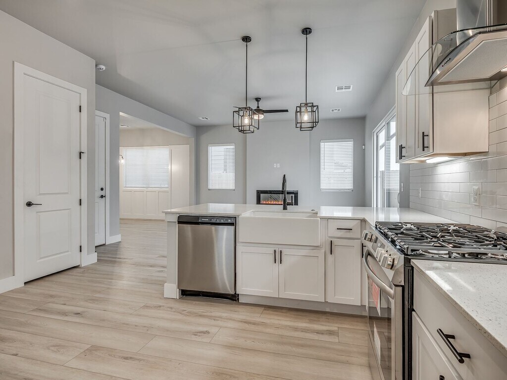 The Tremont is a beautiful two-story home designed with families in mind, featuring 3 bedrooms, 2.5 bathrooms, and a 2-car garage. From the moment you walk through the stunning top-of-the-line steel front door, you’ll notice the 10-foot ceilings and elegant Rigid Core flooring that set the tone for the entire home. The main level offers a charming powder bath and a dining area that flows seamlessly into the family room. The kitchen is a showstopper, complete with custom cabinetry, designer hardware, a farmhouse sink, quartz countertops, and stainless steel appliances. Upstairs, all bedrooms and the utility room are conveniently located, with 9-foot ceilings adding to the sense of comfort and spaciousness. The primary suite includes a generous bathroom with a frameless shower and ample closet space. Highland Pointe residents enjoy resort-style amenities, including a luxury community pool, clubhouse, and fitness center. Plus, the neighborhood is just minutes from Chisholm Creek, a premier destination for shopping, dining, and entertainment.