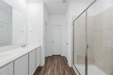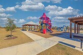 North Facing !!The Mozart, with a quaint, stylish floor plan, creates open concept intimacy with family room at the center of the 3 bed, 2 bath design. Foyer reveals the airy family room, which includes a wall of windows looking out to covered patio. The family room flows into the breakfast nook & island kitchen, with quartz counter tops. The owner's suite, in the back of the home, includes large walk-in closet & windows looking to back yard. In the master bath, his & her vanities & spacious walk-in closet. Location is incredible within a mile of shopping & schools. Community amenities including playground for kids, park to cool down and trails for daily step in are in walking distance. There is a community swimming pool to cool down during summer as well.
