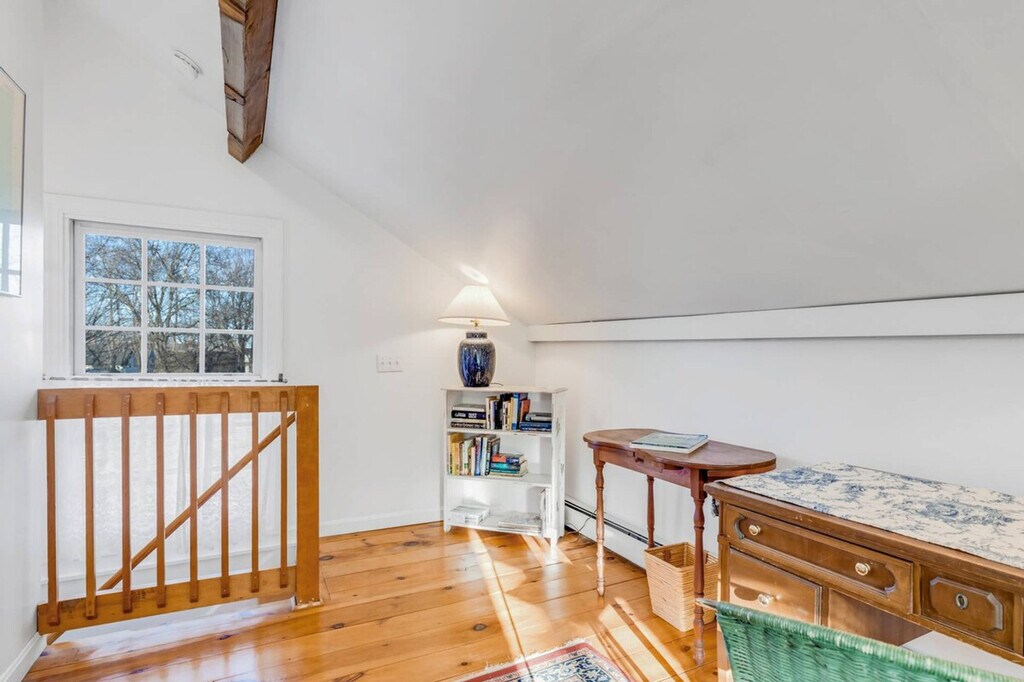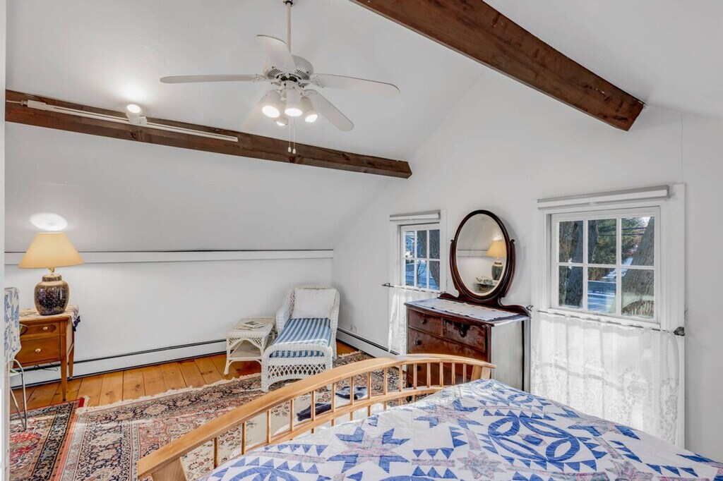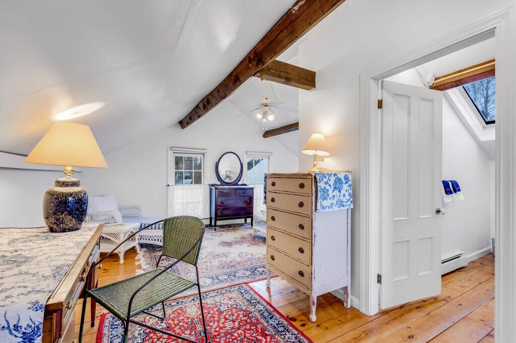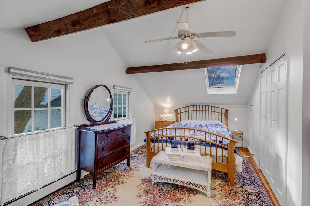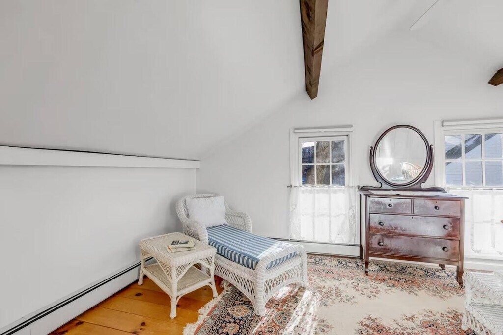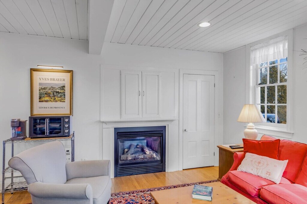 The Carriage House at Linden Tree Farm is a spacious 1-bedroom Carriage House located in downtown Newburyport. Part of a circa-1840 mansion, this home is renowned for its gingerbread moldings, lovely gardens, and the iconic Linden Tree. Guests will feel at home while stepping back into a time of elegance and opulence, with antique beams and gleaming pumpkin pine floors enhancing the historic charm. This completely private 1-bedroom apartment features an open living space on the first floor, complete with a kitchen, dining area, and a spacious living room. The easy-to-use gas fireplace sets a romantic mood, while the petite kitchen provides all the essential accoutrements, including a large fridge, dishwasher, stove, french-door air fryer, and Keurig coffee maker. Upstairs, the bedroom suite offers a queen bed, seating area with chaise and chairs, and a private bath. A comfortable workspace with a desk and chair is available both in the bedroom suite and the main living level. For family-friendly stays, a luxury Pack-n-Play or other children's furnishings are available for an additional charge, subject to availability. Stepping out from the Carriage House, visitors can stroll along High Street, Newburyport's mansion row, featuring Federalist, Victorian, and Empire style mansions leading to the vibrant downtown. Newburyport, awarded as a best place to live, offers excellent restaurants, pubs, museums, and boutiques. For a respite from city life, the paved rail trail leads to the scenic River Walk Park or the Scenic Essex Byway. Nearby attractions include Plum Island for wildlife and bird watching, Parker River for water play, and Salisbury beaches. The commuter train, a 2-minute drive away, provides access to coastal cities between Boston and Portland, Maine. Smoking is strictly prohibited, and guests will be fined and immediately evicted for smoking or vaping in the home or on the property. No parties, events, performing artists, or bands are allowed at any time, as these are grounds for eviction with no refund. The fireplace will be temporarily disabled when the air conditioning is installed and will remain unavailable while the AC is in place. It will become available again once the AC unit is removed. The property is cooled with window air conditioning units, installed in May and removed in September, each with both cooling and fan functions. The apartment includes a comfortable workspace with a desk and chair both in the bedroom suite and in the main living level, making it ideal for remote work. [SI]