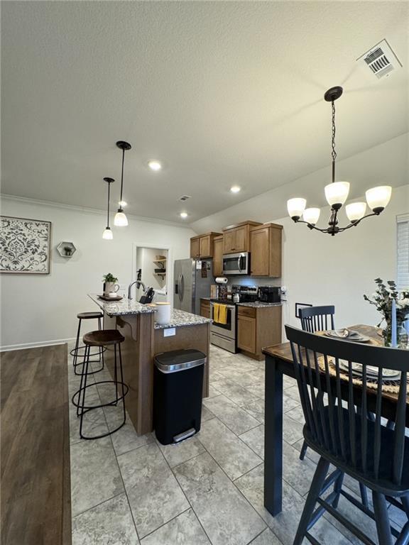 This stunning all-brick 4 bedroom, 2 bath home features a spacious split floor plan with a cozy gas fireplace and elegant crown molding in the living room and primary suite. the kitchen boasts stainless steel appliances, a pantry, and stylish finished throughout. The primary suite offers a relaxing whirlpool tub, separate shower, and double vanity. Additional highlights include a utility room, garage door opener with keypad entry, pull-down attic storage, and energy-efficient features. Step outside to a covered patio perfect for outdoor entertaining! MLS# 1328388