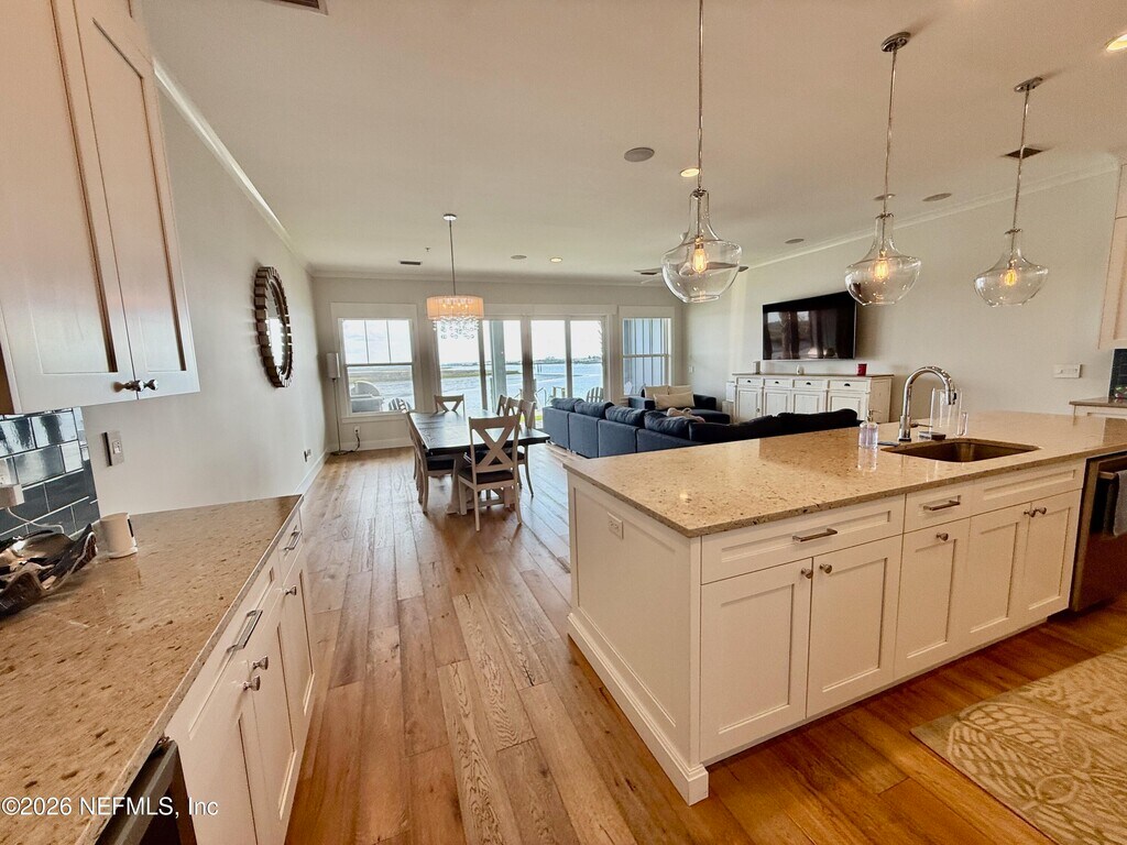 Imagine waking up to soft golden light spilling across calm waters,the gentle ripple of the Intracoastal just beyond your windows. This stunning waterfront townhouse is designed for effortless coastal living,where every detail invites you to relax and enjoy the view. Step inside to a bright,open floor plan that seamlessly blends living,dining,and kitchen spaces,perfect for entertaining or simply soaking in the airy,beach-inspired atmosphere. At the heart of the home is a beautifully upgraded kitchen,featuring gleaming quartz countertops,modern cabinetry,and stylish finishes that feel both elegant and inviting. Whether you're preparing a casual brunch or hosting friends after a day on the water,this space is as functional as it is beautiful. Outside,your private boat lift makes it easy to embrace the boating lifestyle,spontaneous sunset cruises and weekend adventures are just moments away. This is more than a home,it's a lifestyle defined by water,sunshine,and effortless coastal charm. MLS# 2135749