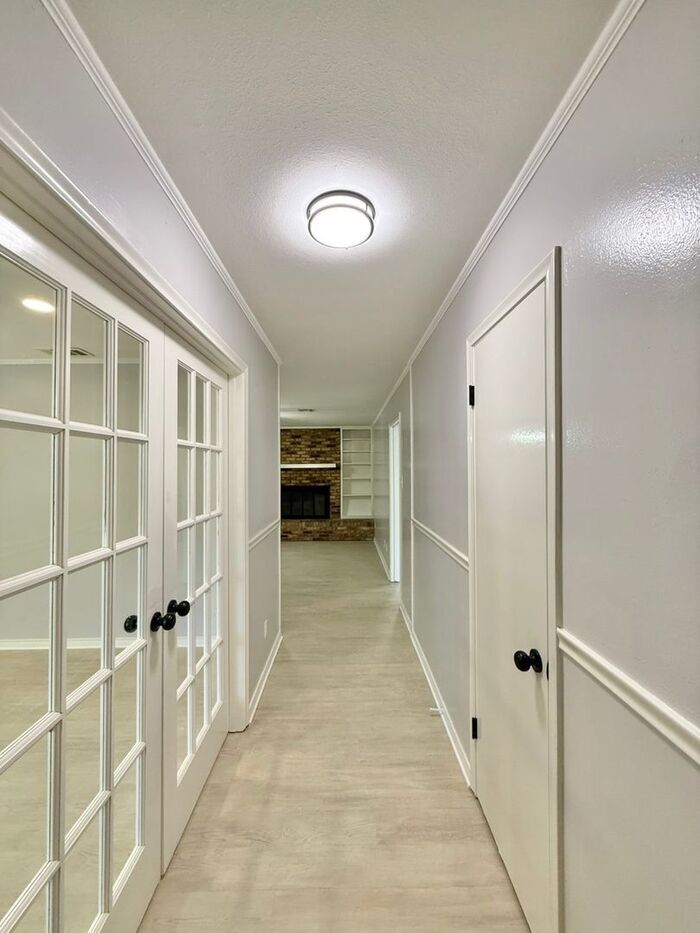 Welcome to this 3-bedroom, 2-bathroom home offering 1,595 sq. ft. of comfortable living space. Step inside to find wood-like flooring throughout the main living areas and cozy carpeted bedrooms, creating an ideal blend of style and comfort. A set of elegant French doors leads to a versatile bonus room, perfect for a home office, playroom, or dining area. The inviting living room features a classic brick fireplace with built-in shelving, adding warmth and character. The light and bright kitchen boasts white cabinetry, black appliances (dishwasher and oven), and a convenient overhang ideal for barstool seating—perfect for casual dining or entertaining. Both bathrooms feature tile flooring and modern black finishes, with the first bathroom offering a shower/tub combo and the ensuite primary bathroom showcasing a walk-in shower. The primary bedroom also includes double closets for ample storage. Additional highlights include a laundry room with washer and dryer hookups located in the garage, plus an extra storage room with built-in shelving just off the garage. Enjoy outdoor living in the fenced-in backyard complete with a covered patio, providing a great space for relaxing or hosting friends and family. This home truly has a little bit of everything—don’t miss your opportunity to make it yours! Oven/stove and dishwasher included- Tenant to provide their own fridge, microwave, and washer/dryer. Schedule your showing today! This property is currently set up on a Rently self-touring lockbox so that prospects can self-tour at their own convenience. Please visit click the vacancies tab and view the self touring options/ listings to self tour. *For detailed pet policy and qualifications, visit our website at and review our rental policies. *We do not accept government housing *Pricing and availability are subject to change without notice *Application fees are non refundable. Deposit is due within 24 hours of approval. We make each home move in ready in between tenants to ensure it's fresh and ready to be made your new home! This property allows self guided viewing without an appointment. Contact for details.