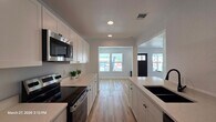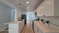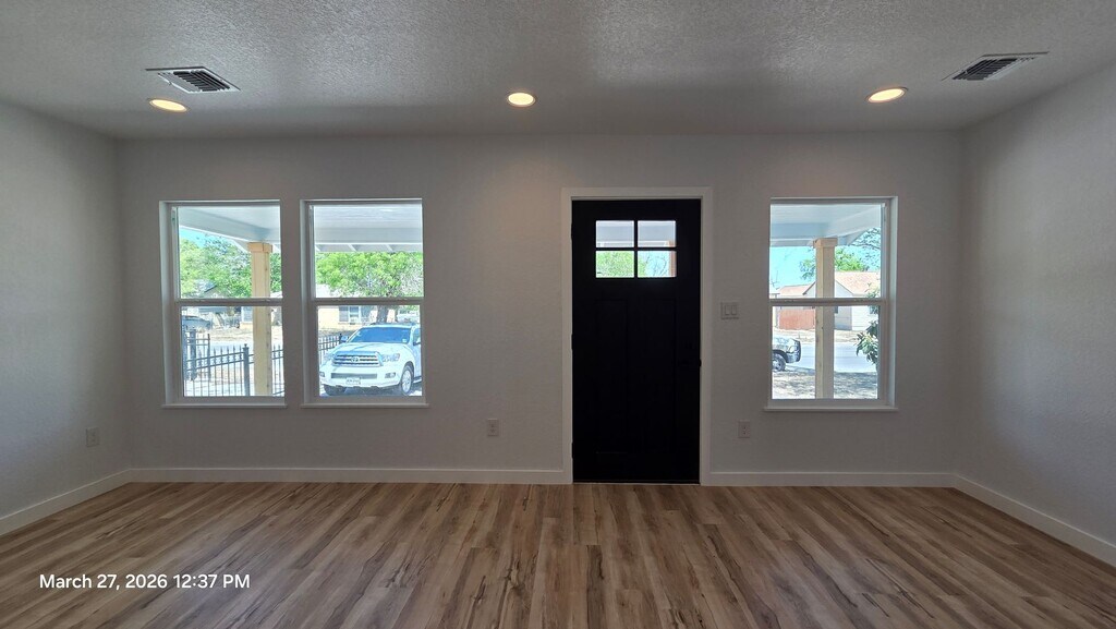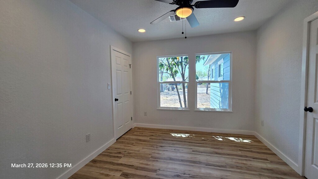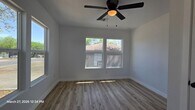 Clean lines, modern finishes, and a full renovation throughout—this 3-bedroom, 2-bath home at 2530 W Woodland offers a fresh, move-in ready interior with a thoughtful layout. The kitchen has been completely updated with white shaker cabinetry, quartz countertops, stainless steel appliances, and a large peninsula with undermount sink and matte black fixtures. It opens directly to the dining and living areas, creating a functional flow for everyday living. Durable wood-look flooring runs throughout the home with no carpet. Both bathrooms have been fully remodeled with updated vanities, fixtures, and clean, modern finishes. The primary suite includes its own private bath, while the secondary bedrooms are well-sized and share a centrally located hall bath. Additional highlights include a dedicated laundry room, updated lighting, neutral color palette, and abundant natural light. Exterior features include a covered front porch with wood accents, fresh siding and paint, and a fenced yard with driveway parking. Conveniently located with quick access to major roads, shopping, and dining. Available for immediate move-in. Reach out to schedule a showing.
