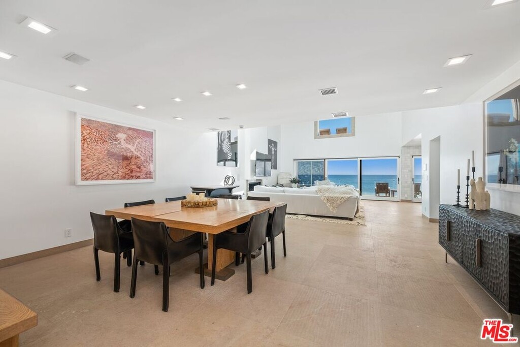 Fully furnished and ready for move-in immediately!! This property spans 50ft on the deepest section of beach on Malibu Rd & has unobstructed panoramic ocean views of Santa Monica Bay, Catalina & Point Dume. The property features a dual gated entry, driveway w/ ample secure parking & courtyard that leads to the custom fossilized front door. The main floor is expansive & features an open floor plan w/ formal dining area, living area w/ double-height ceiling & newly remodeled kitchen w/ a massive marble island, custom cabinetry & brand-new stainless-steel appliances by Viking and Wolf. An abundance of natural light fills the space w/ a large skylight & floor-to-ceiling sliding glass doors that open to a large balcony w/ glass railings that span the width of the house. The primary suite encompasses the entire top floor w/ his & her walk-in closets, custom blue marble bathroom w/ dual vanity & water closets, skylight & soaking tub w/ ocean views. The primary bedroom features a fireplace & sliding glass doors that lead out to the balcony & west facing sunset views. The bottom floor features three additional en-suite bedrooms, one of which is oceanfront w/ direct balcony access & the other has triple bunkbeds. Lastly, there is an oceanfront den, laundry room & private beach access. Centrally located off PCH in the highly desirable Malibu Rd community w/ easy access to world class dining at Nobu or Lucky's, designer shops in the Country Mart & countless miles of hiking at Bluff's Park & Puerco Canyon. MLS# 25570429