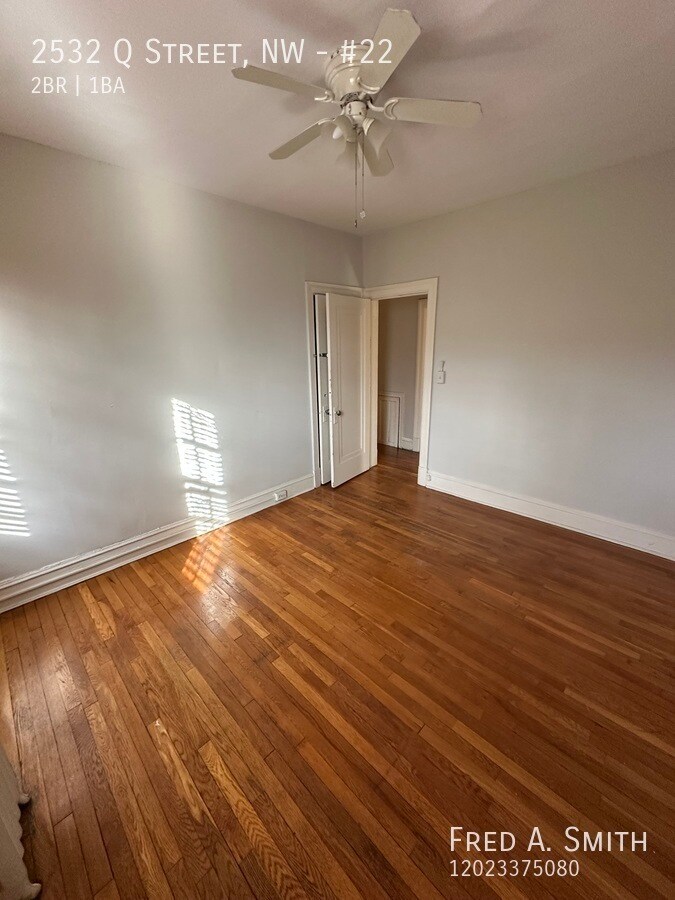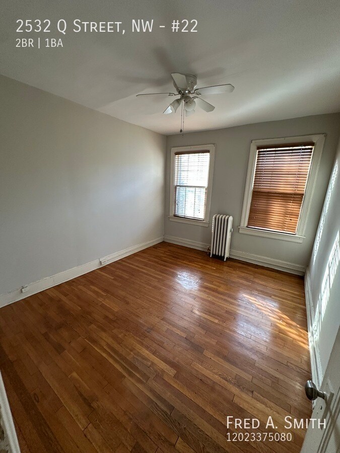 LOCATION : 2532 Q St NW, Washington DC 20007 NEIGHBORHOOD/BUILDING HIGHLIGHTS Charming 2BR Apt conveniently located in the East Village of Georgetown, just minutes from Dupont circle. It is a short distance to Dupont Metro, and right around the corner from Montrose Park. Window AC Unit & Central heating Secured entry for access and an onsite manager Tenant pays gas and electric LEASE TERMS 12 Month Lease Payments & Service Requests made via Tenant Portal Professionally managed by: Fred A Smith Company 730 24th St NW Suite 19 Washington, DC 20037