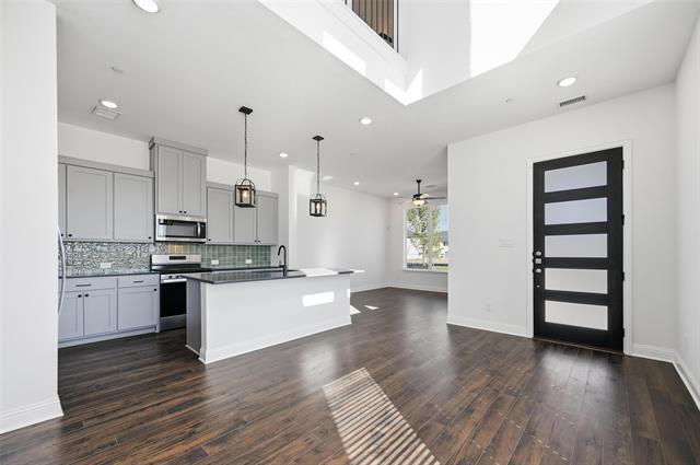 This brand-new end-unit townhome in Chelsea Commons is a rare find—beautifully upgraded and tucked into one of Allen’s most sought-after communities, right off Highways 121 and 75. Step into this beautifully upgraded 3-bedroom, 2.5-bath townhome designed with both comfort and sophistication in mind. Soaring ceilings, oversized windows, and an open-concept layout fill the home with natural light and offer serene greenbelt views. The main level offers a spacious living area, dining space, and a gourmet kitchen featuring 42†cabinetry, quartz countertops, a subway tile backsplash, single-bowl sink, and stainless-steel appliances. A half bath and a convenient office nook with a built-in desk complete the first floor. Upstairs, retreat to the owner’s suite with a spa-inspired bathroom, double vanity, walk-in shower, and generous walk-in closet. Two additional bedrooms share a sleek full bath with modern finishes, and a flex space offers versatility for a reading nook, play area, or workout corner. Additional features include an epoxy-coated two-car garage, smart thermostat, Ring doorbell, and security system. Refrigerator, washer, and dryer are included for your convenience. If you’re looking for comfort, convenience, and contemporary style, this beautifully appointed townhome is the perfect place to call home. NOTE: for Application eligibility, Monthly salary should be 3X of rent.