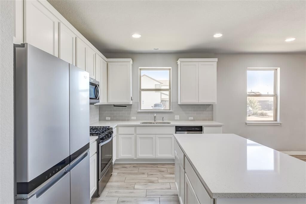 Built in 2021, this 1,620 sq. ft. single-family residence offers 3 bedrooms, 2 bathrooms, and an attached rear-facing garage. This charming home welcomes you with fresh landscaping and great curb appeal. Inside, the open-concept design features a bright and spacious living area filled with natural light—perfect for relaxing or entertaining guests. The contemporary kitchen is a chef’s delight, complete with stainless steel appliances, sleek counter tops, and abundant cabinetry for easy meal prep and storage. The serene primary suite includes an en-suite bathroom, creating a private retreat at the end of the day. Two additional bedrooms provide ample space for family, guests, or a home office. A dedicated laundry room with washer and dryer hookups (no washer or dryer included) adds convenience to your daily routine. Located in a desirable Leander community with access to a refreshing pool, this home combines modern comfort with convenience—just minutes from shopping, dining, and local attractions.